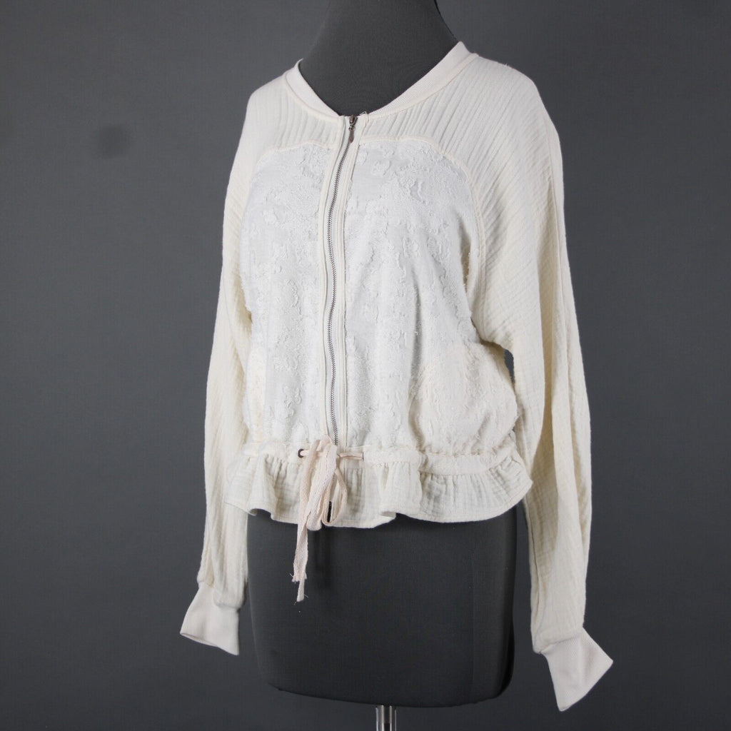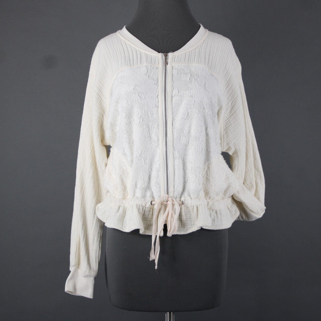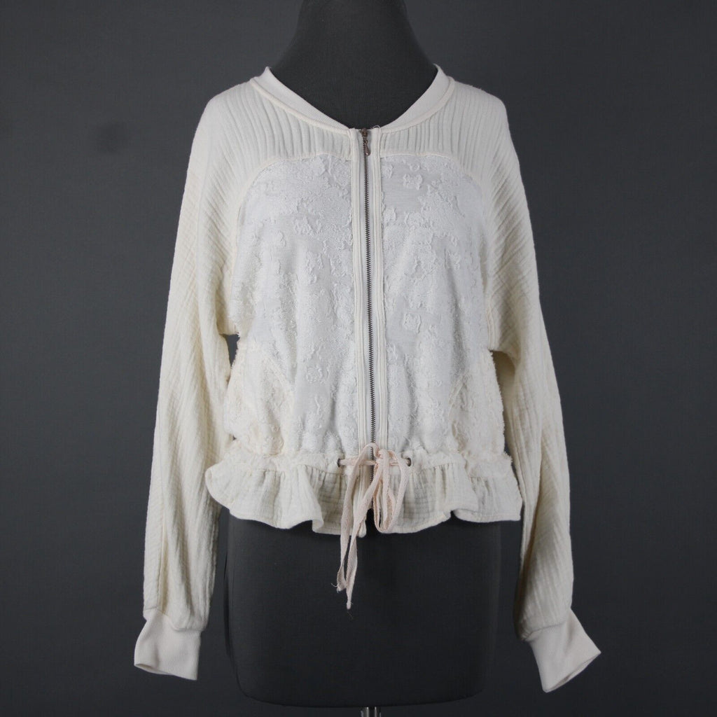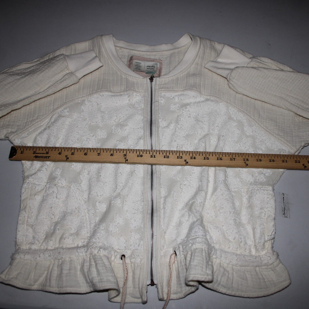 Saturday Sunday Sz S White Cream Long Sleeve Full Zip Pocket Cotton Poly Jacket