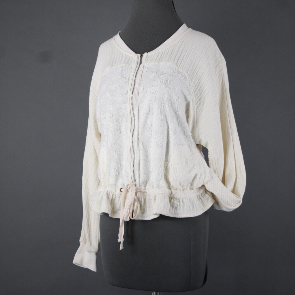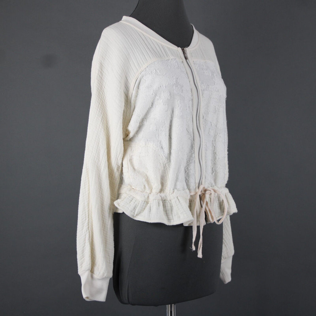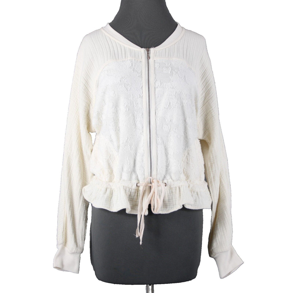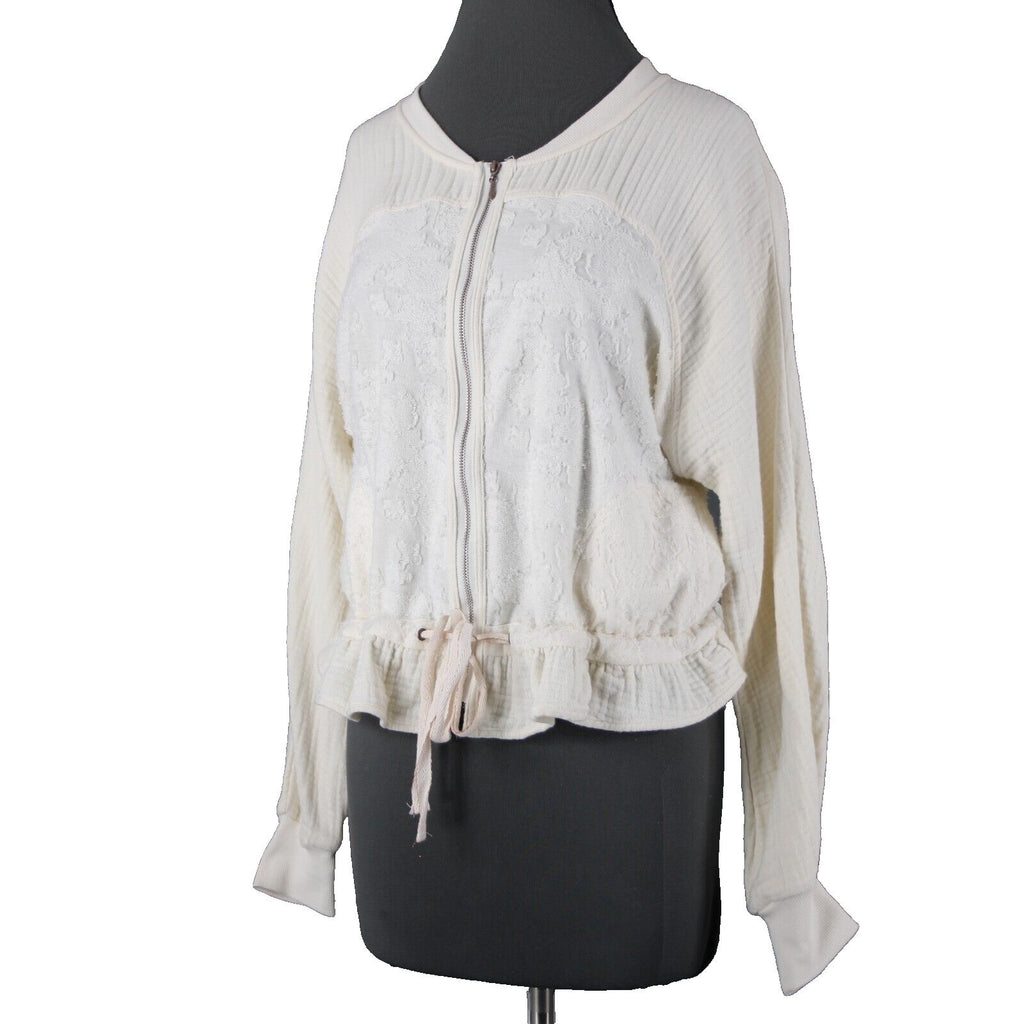 Saturday Sunday Sz S White Cream Long Sleeve Full Zip Pocket Cotton Poly Jacket