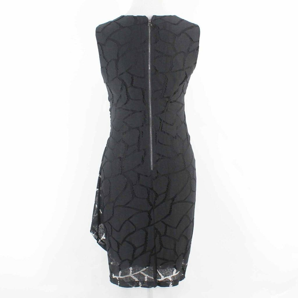 Sea New York Sz 8 Black Lace Overlay Lined Side Ruch Cotton Blend Dress