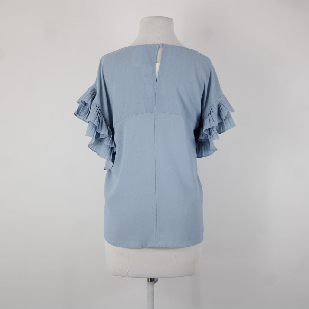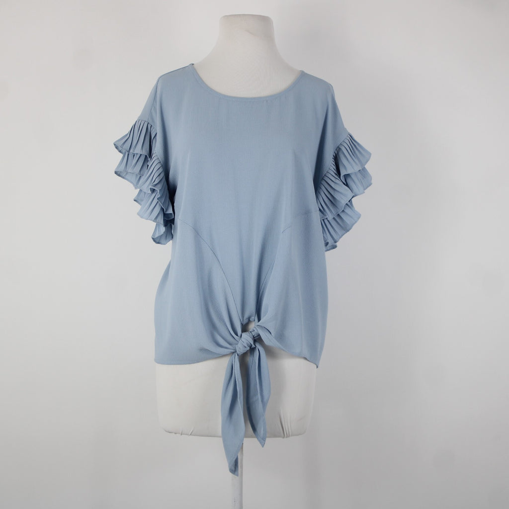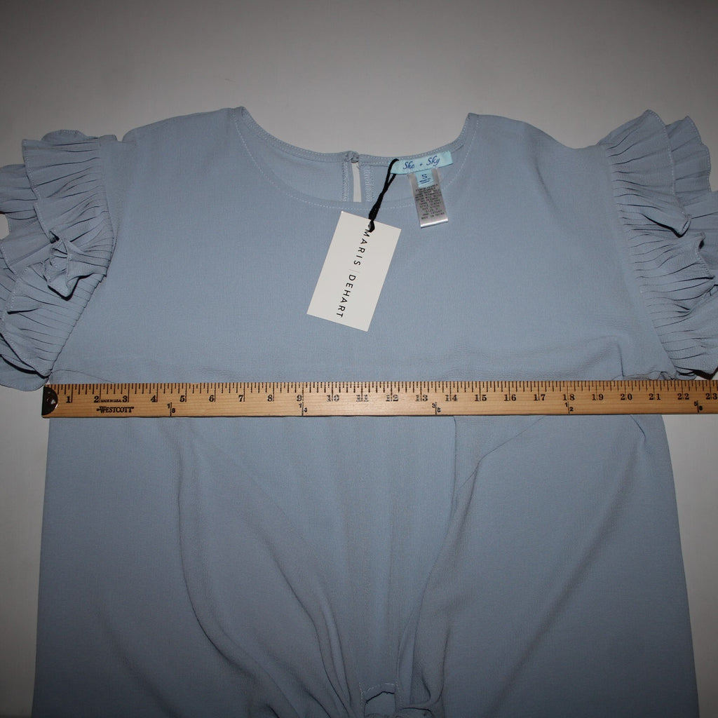 She Sky NEW $74 Sz S Blue Ruffle Sleeves Tie Up Polyester Spandex Top