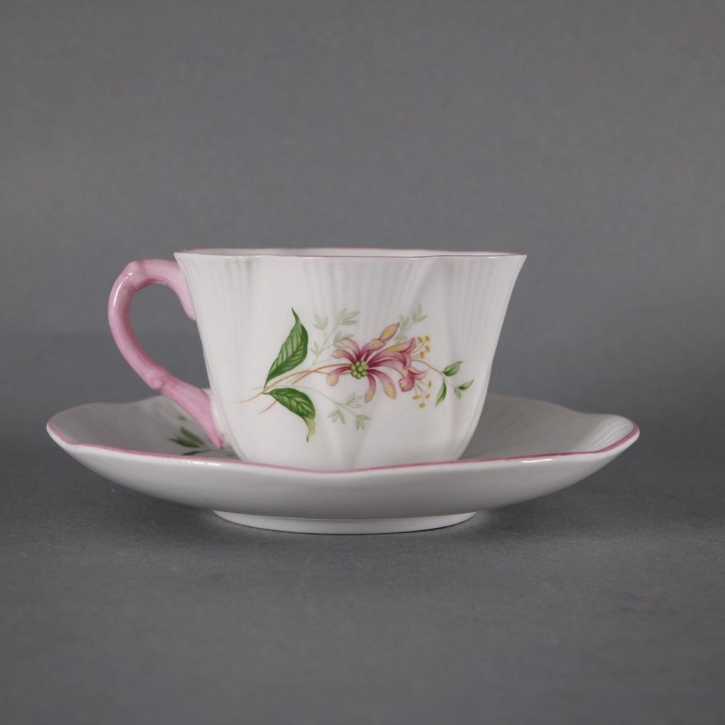 Shelley Tea Cup With Saucer Honey Suckle Pink White Floral Tea Cup With Saucer