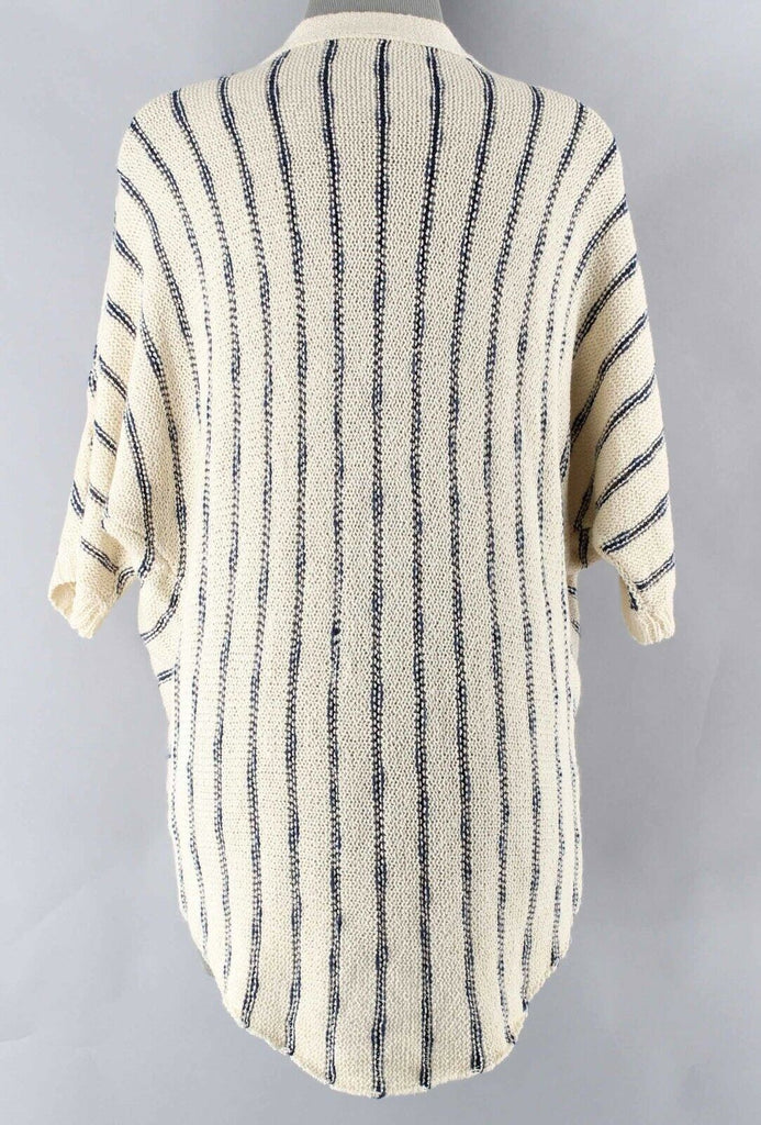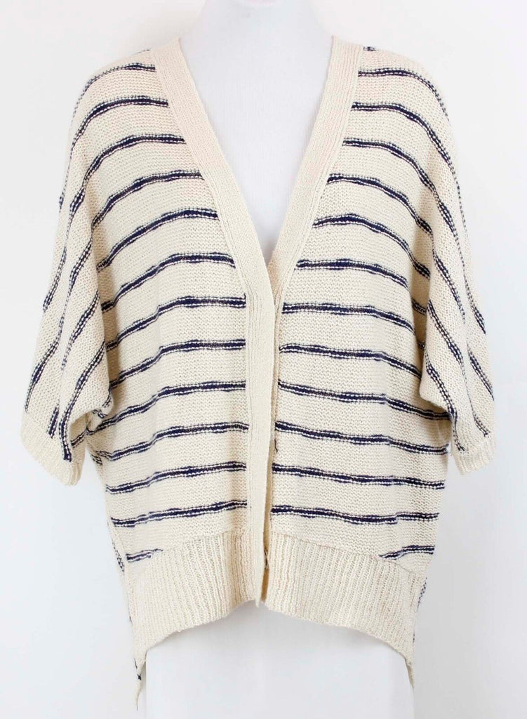 Signature 8 Sz S M Beige Navy Stripe Slouchy 3 Snap Boho Acrylic Cardigan