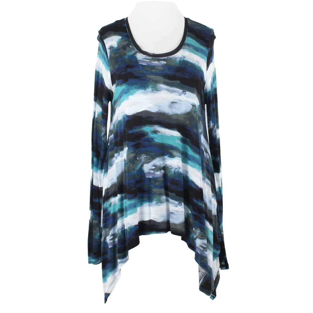 Simply Vera Vera Wang Sz S Blue Multi Asymmetrical Hem 100% Rayon Top