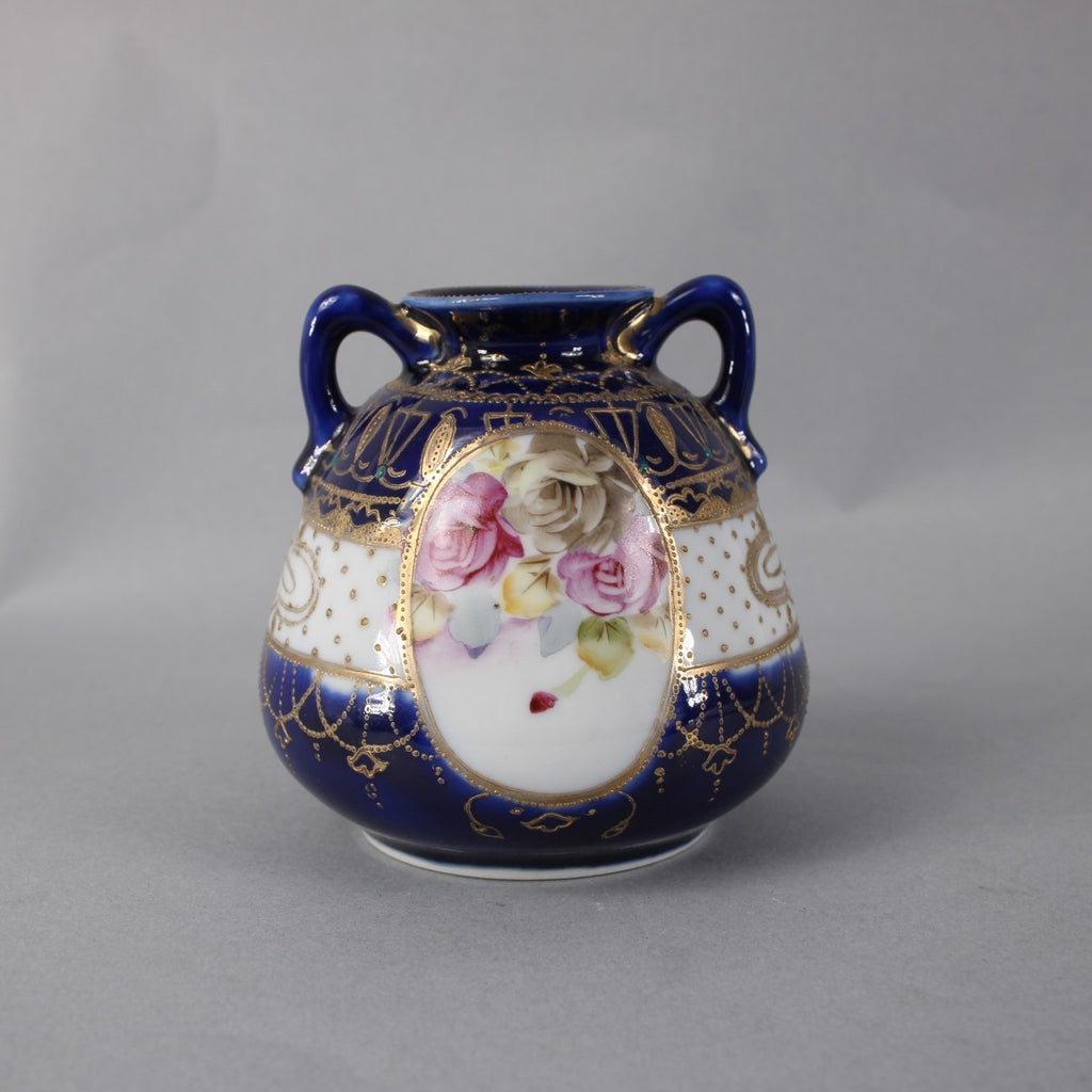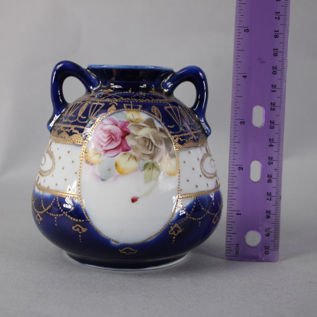 SK Nippon Vase Blue Multi Color Floral Hand Painted 4.25" Vase