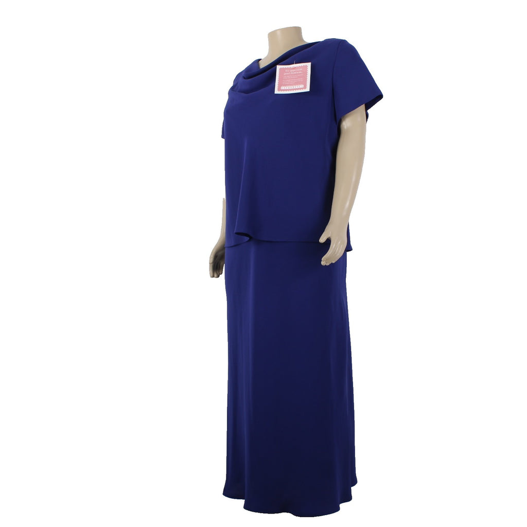 SL Fashions Dress NEW $61 Sz 26W Navy Blue Cowl Neck Short Slv 100% Poly Dress