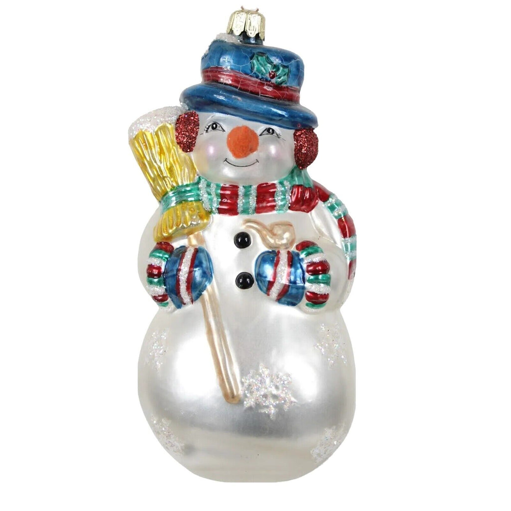Snowman With Broom 7.5" Glass Christmas Holiday Winter Tree Ornament