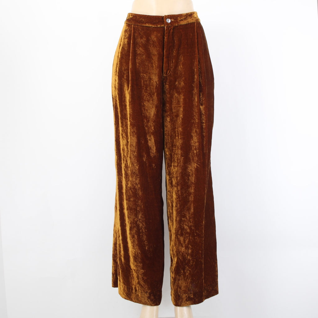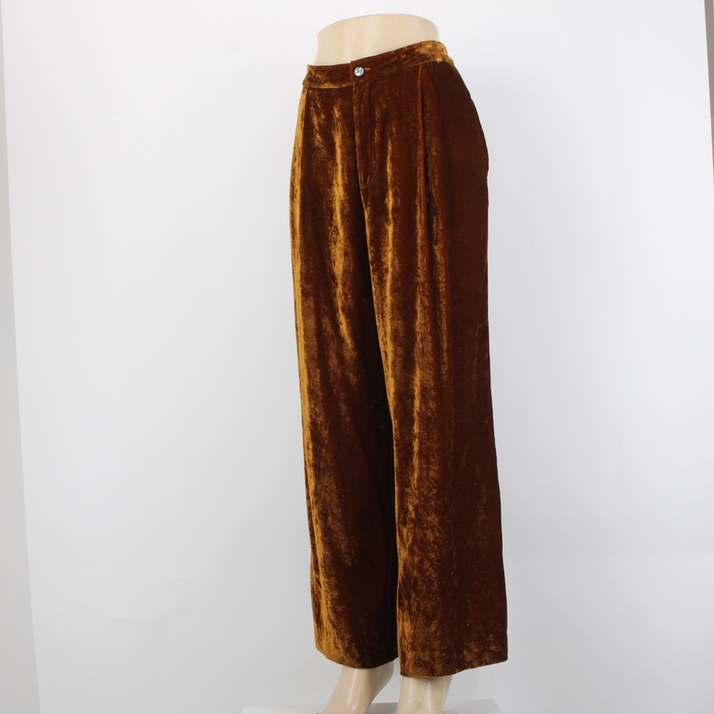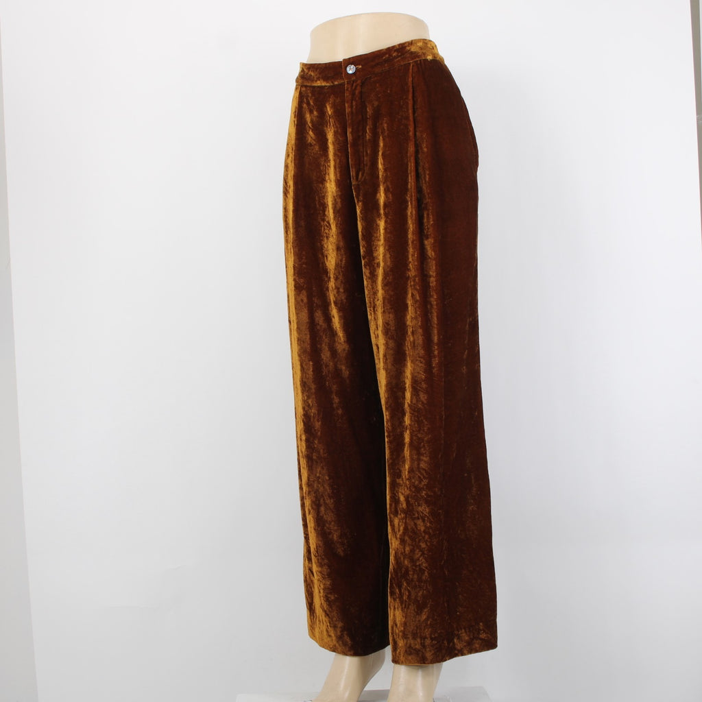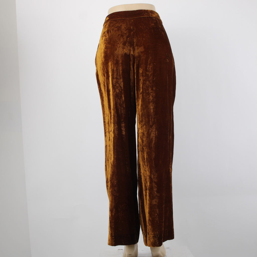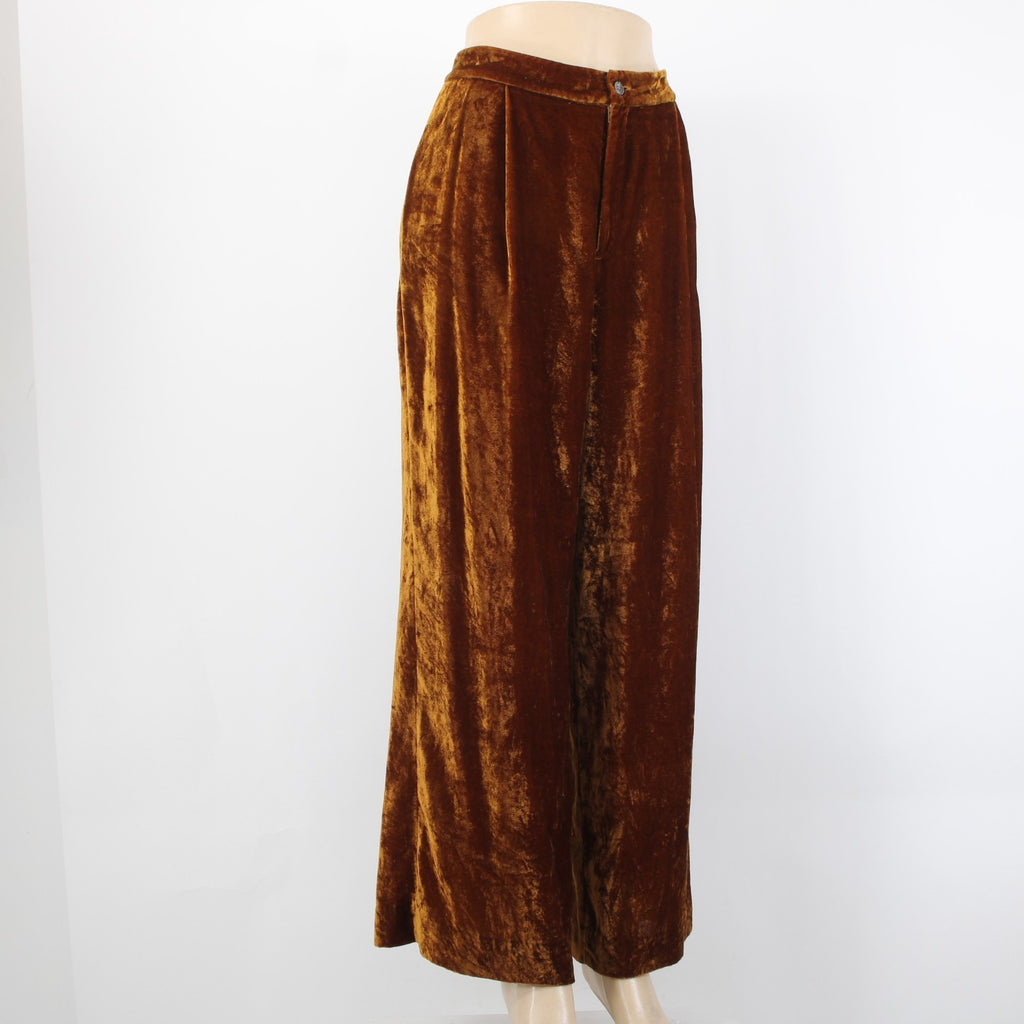 Soeur Sz 42 x Copper Brown Viscose Nylon Crushed Velvet Palazzo Pocketed Pant