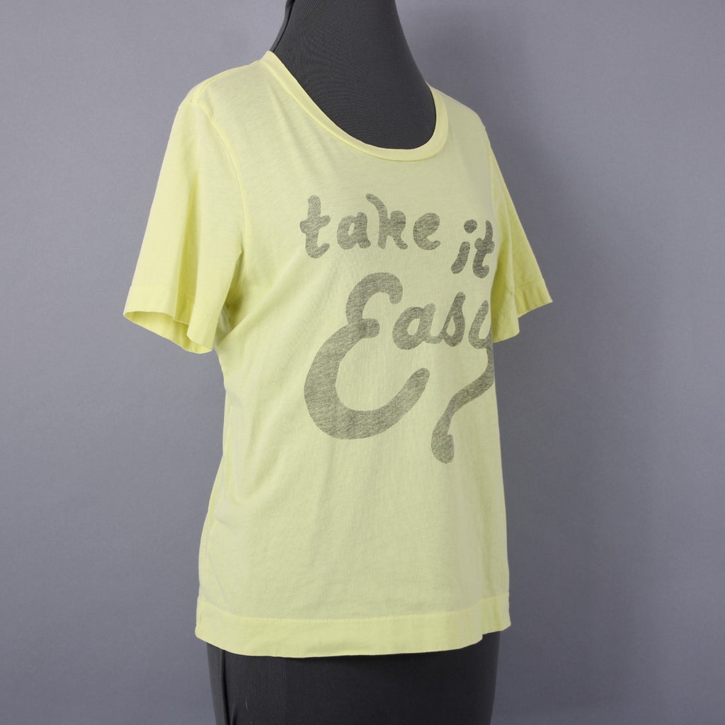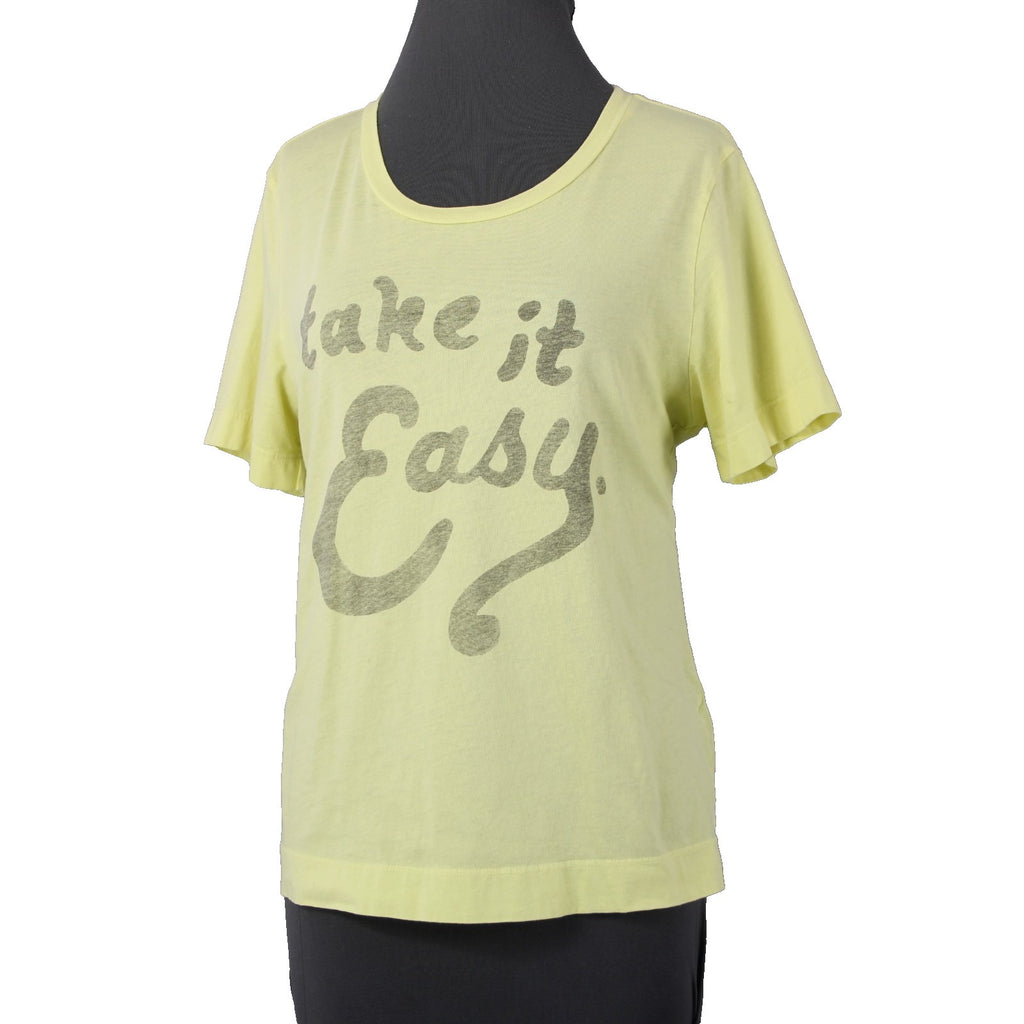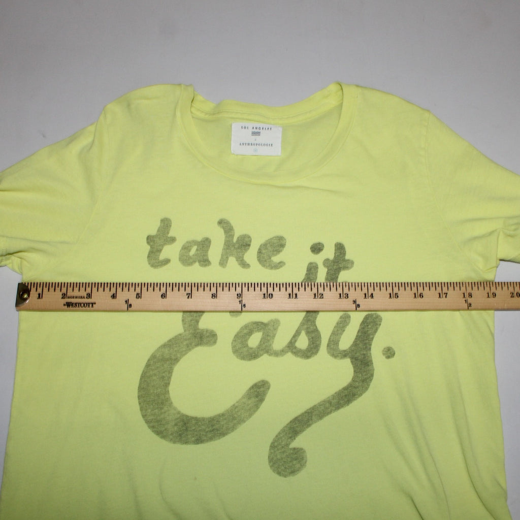 Sol Angeles Sz M Lemon Lime Yellow 'Take It Easy' 100% Cotton Tee Shirt Top