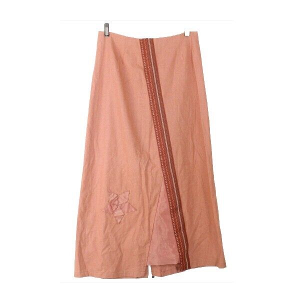 Solola Sz 38 Dark Peach Multi Applique Embroidered Linen Blend Boho Skirt