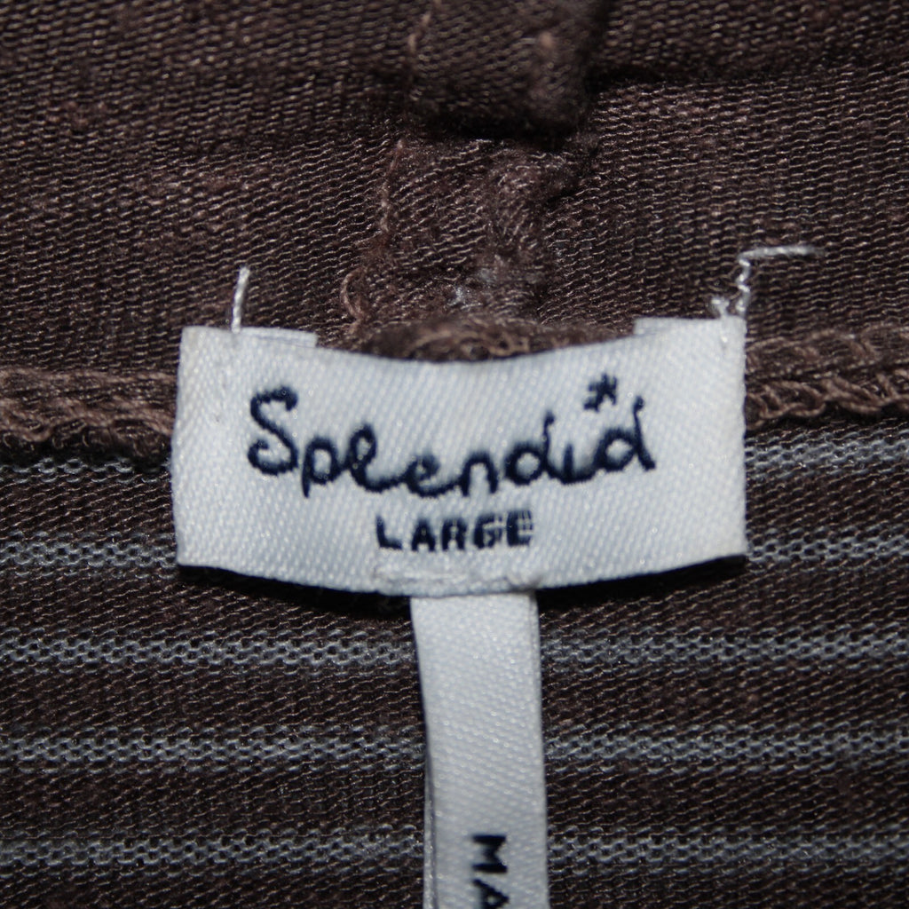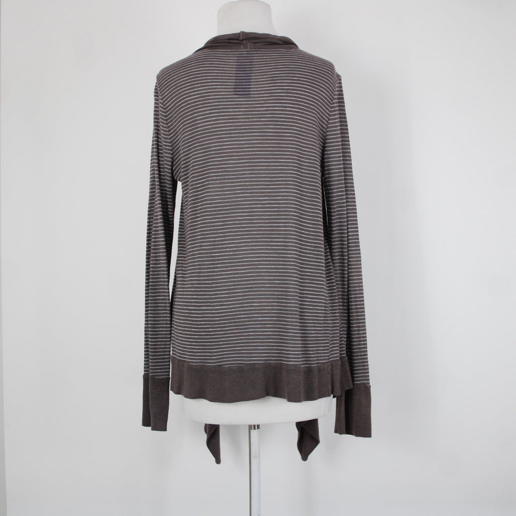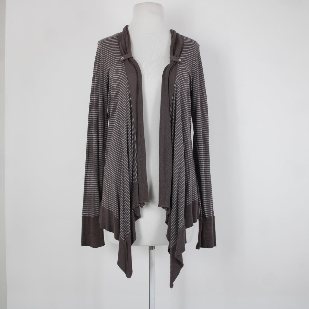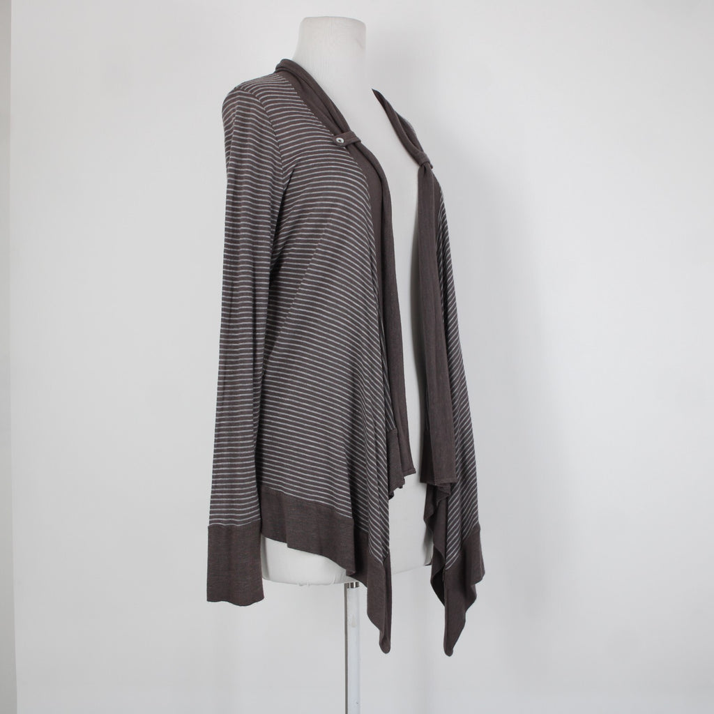 Splendid Sz L Brown Gray Striped Asymmetrical Rayon Linen Poly Wrap Sweater