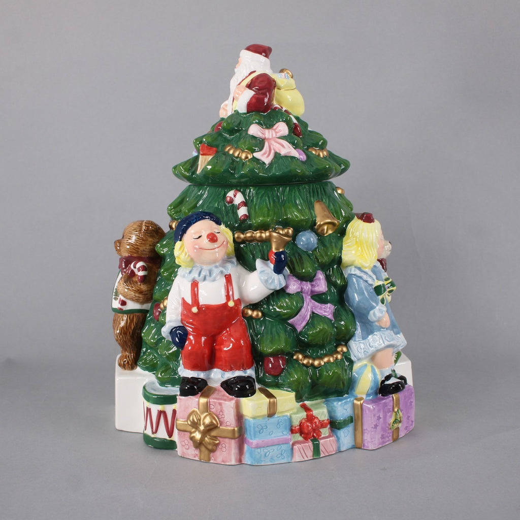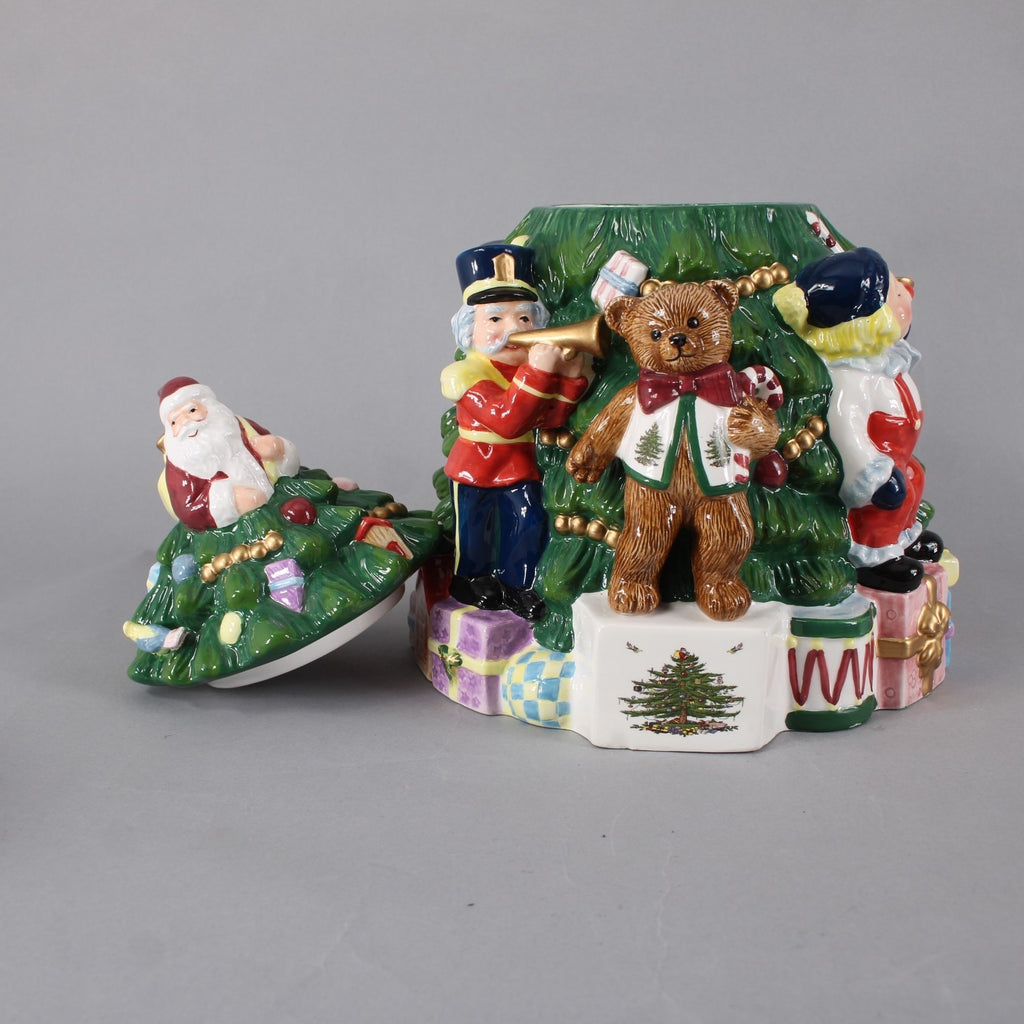 Spode Cookie Jar Christmas Tree Hand Painted Earthenware 2 Pc 13" Cookie Jar