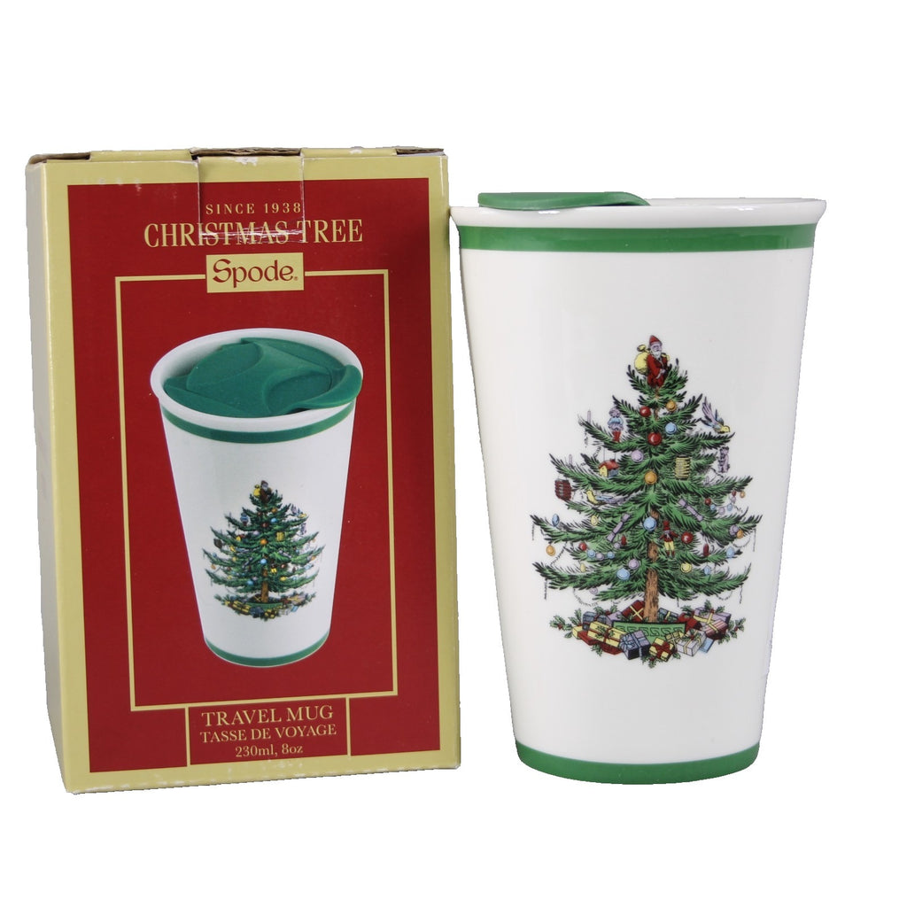 Spode Travel Mug Christmas Tree With Cap 8 oz Travel Mug