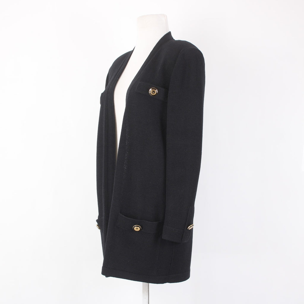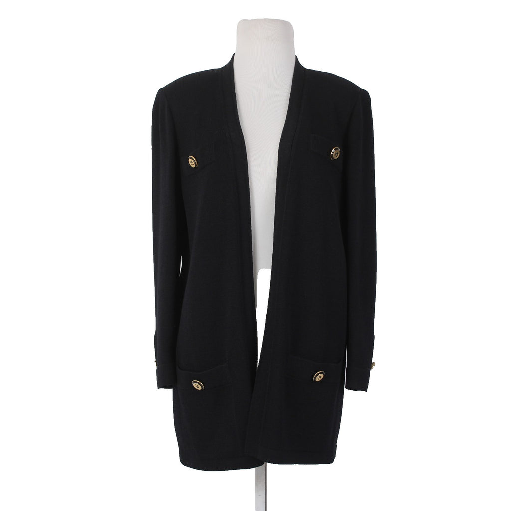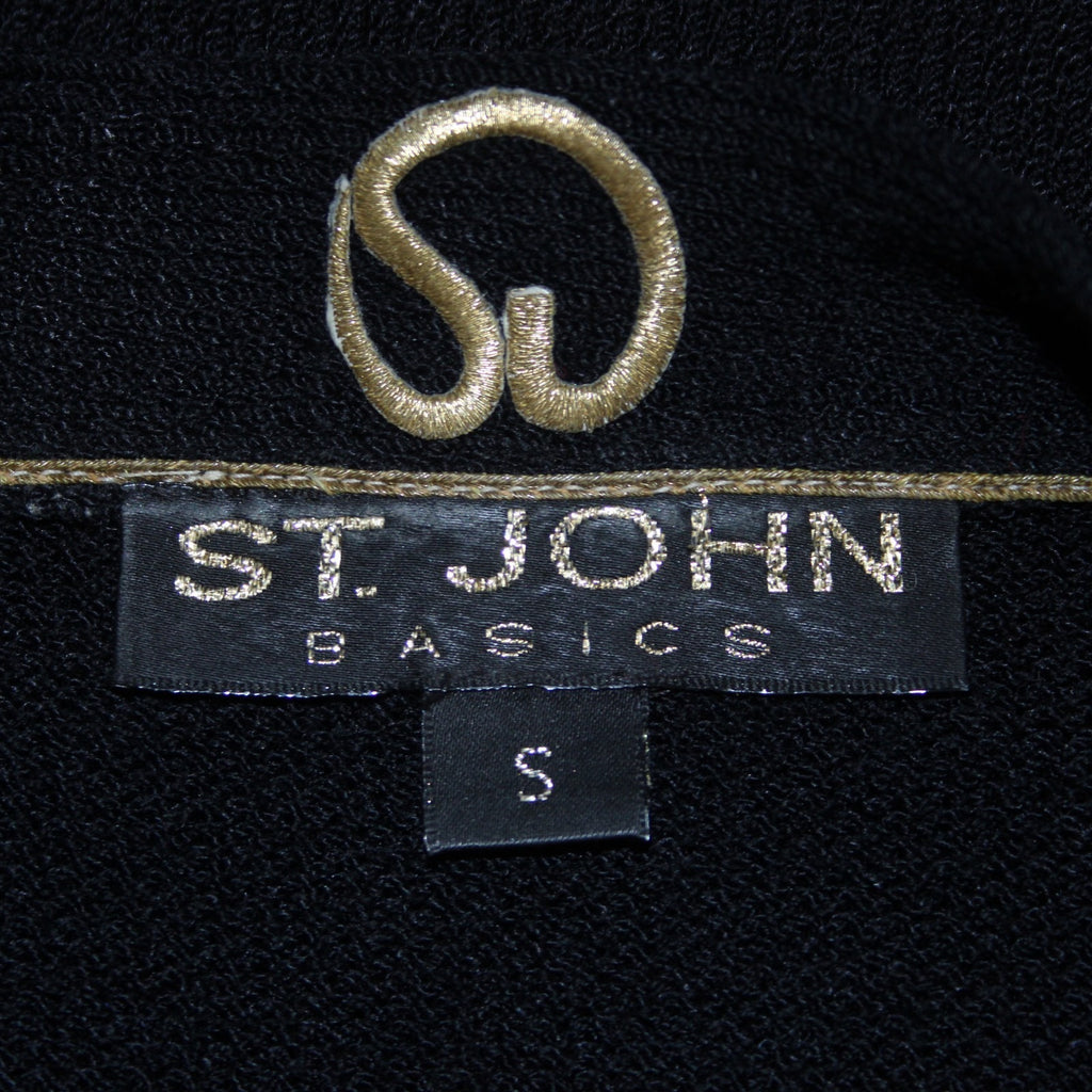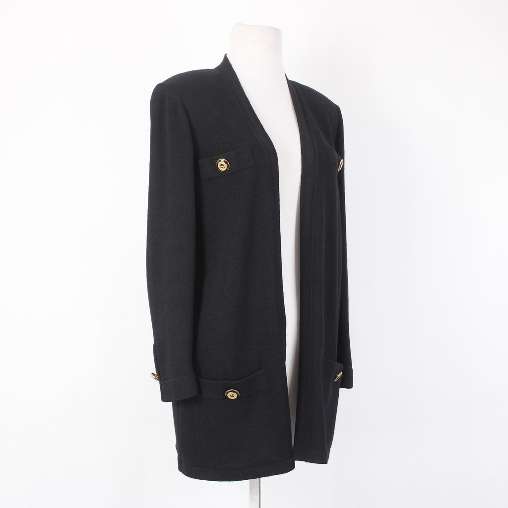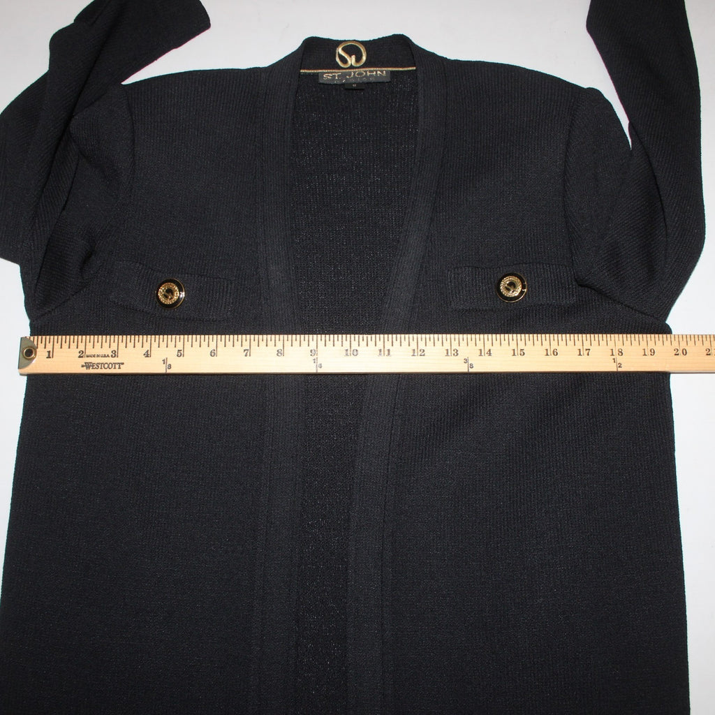 St John Basics Wrap Sz S Black Gold Logo Pockets Santana Knit Wrap Sweater