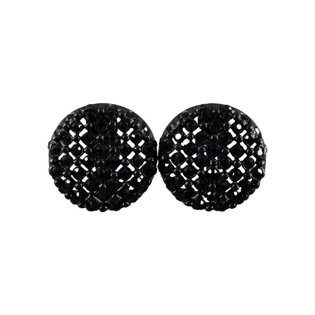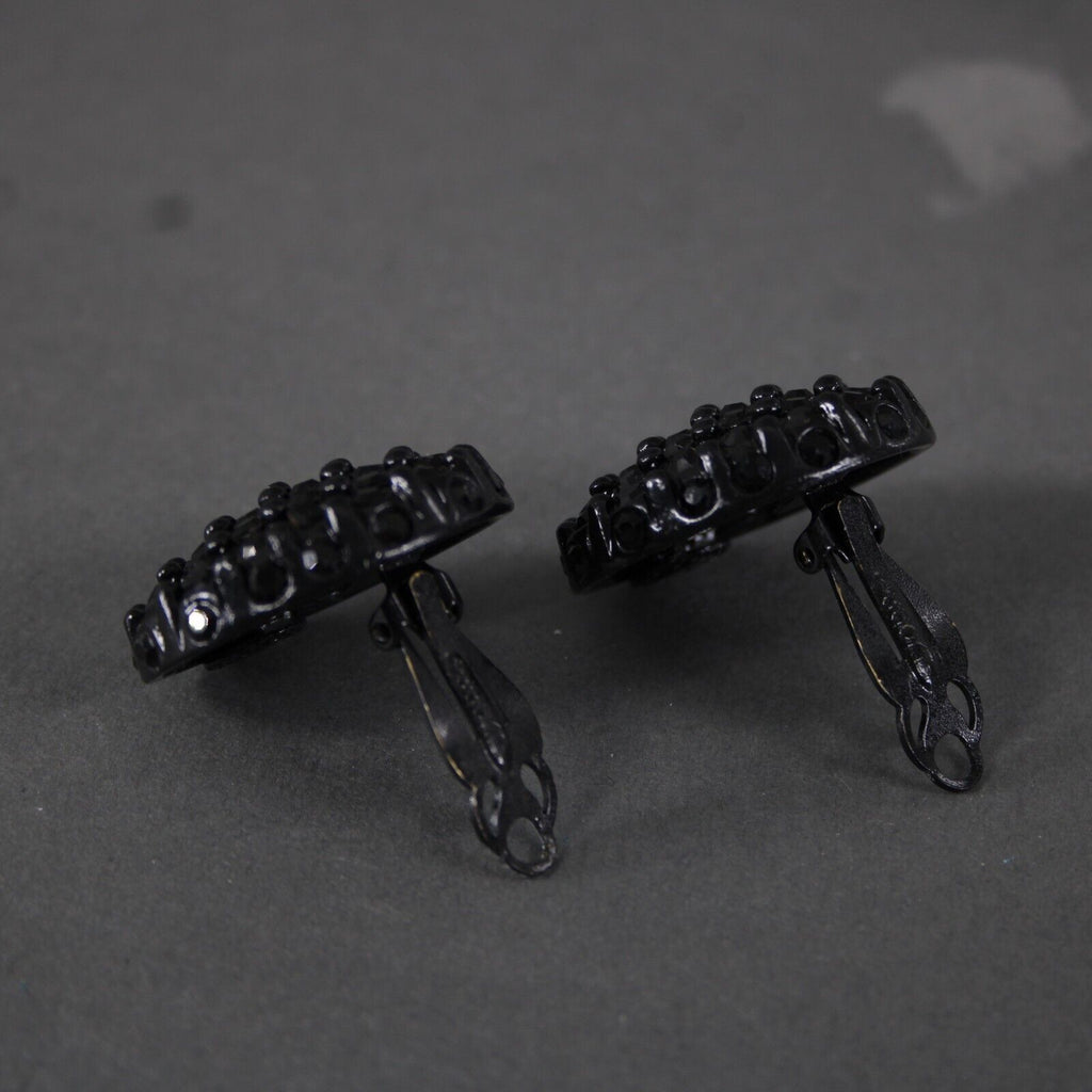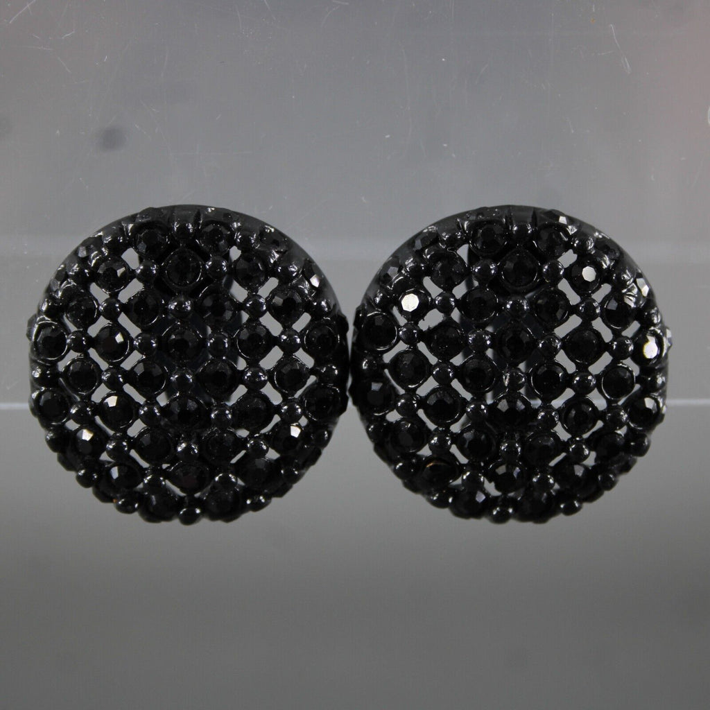 St John Black Pave Rhinestones Round 1" Huggie Clip On Earrings