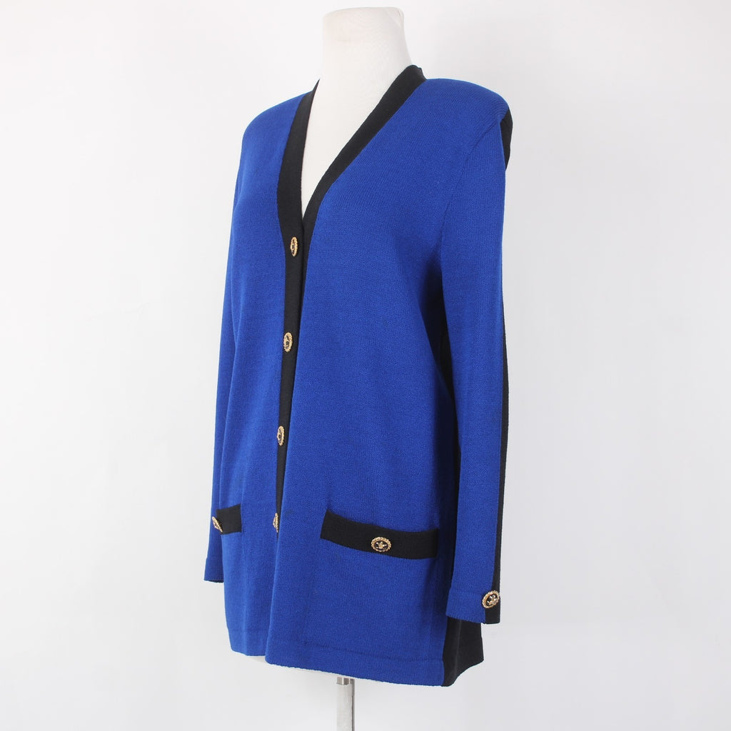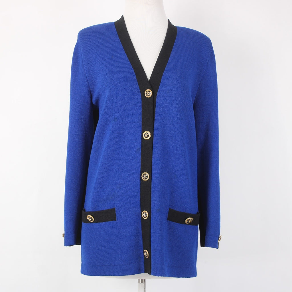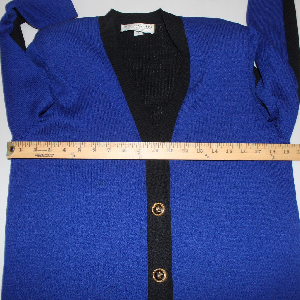 St John Collection Cardigan Sz 6 Royal Blue Black Santana Knit Cardigan Sweater