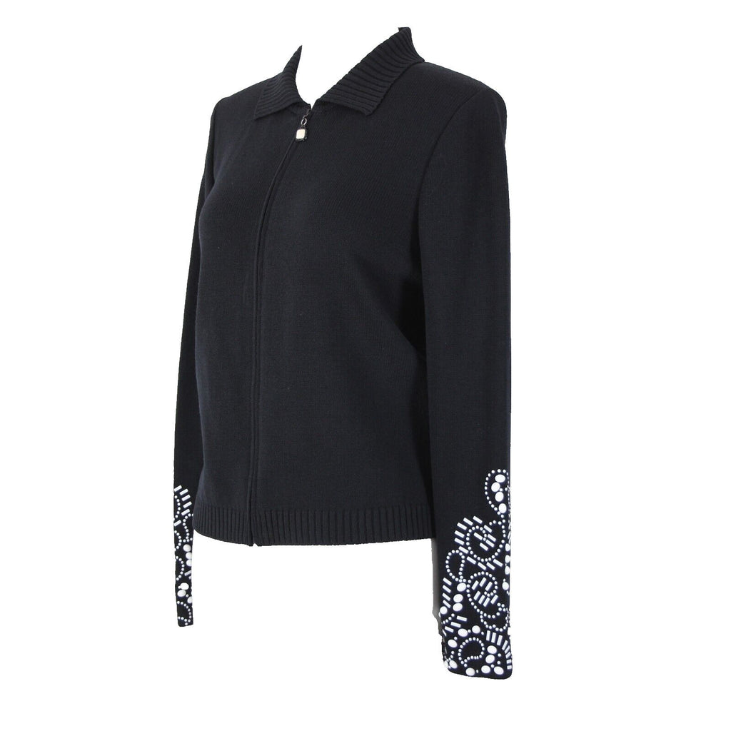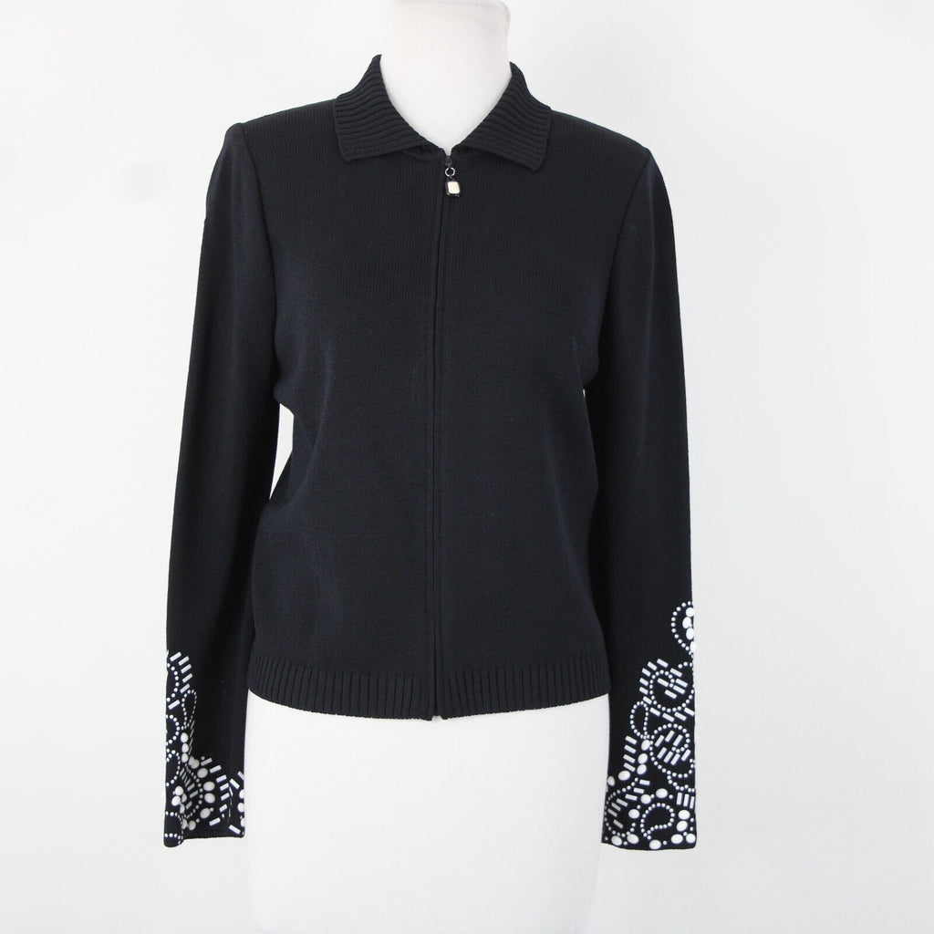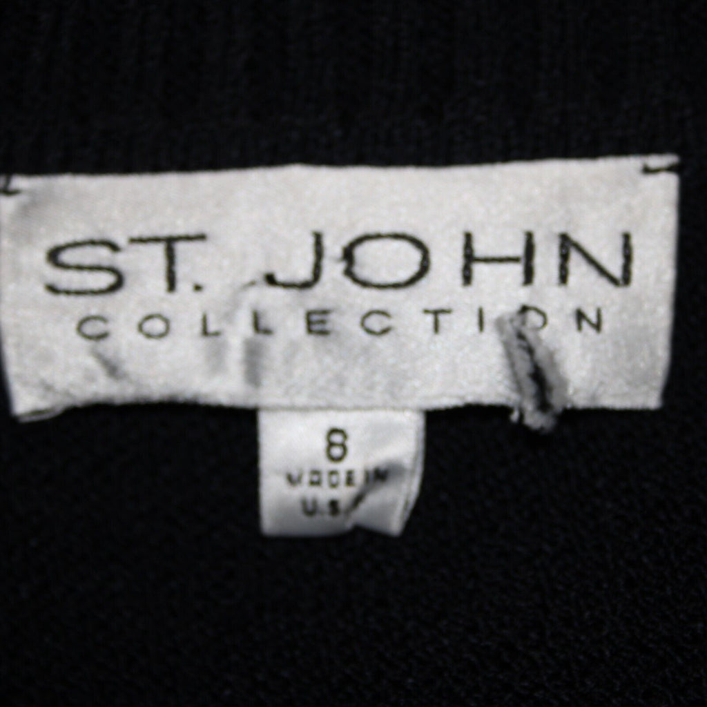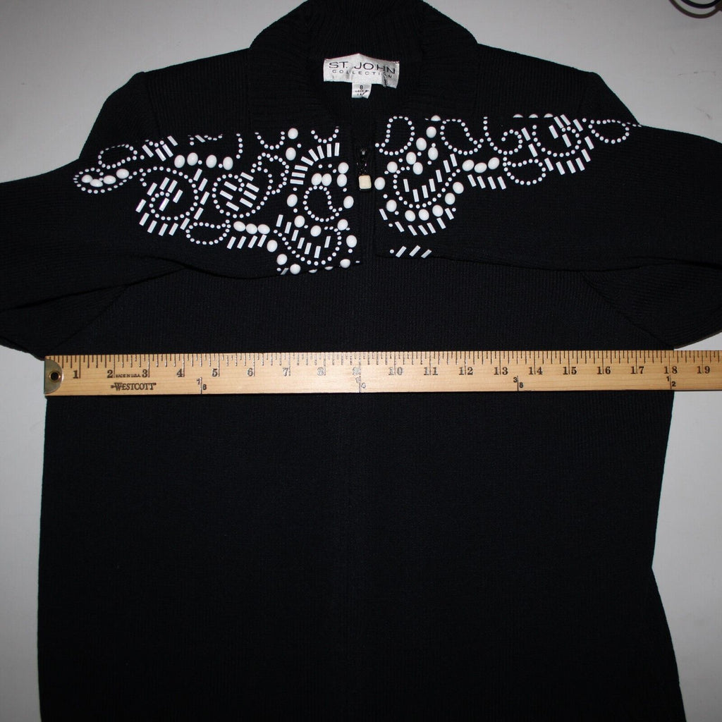St John Collection Sz 8 Black White Beaded Sequin Collared Santana Knit Jacket