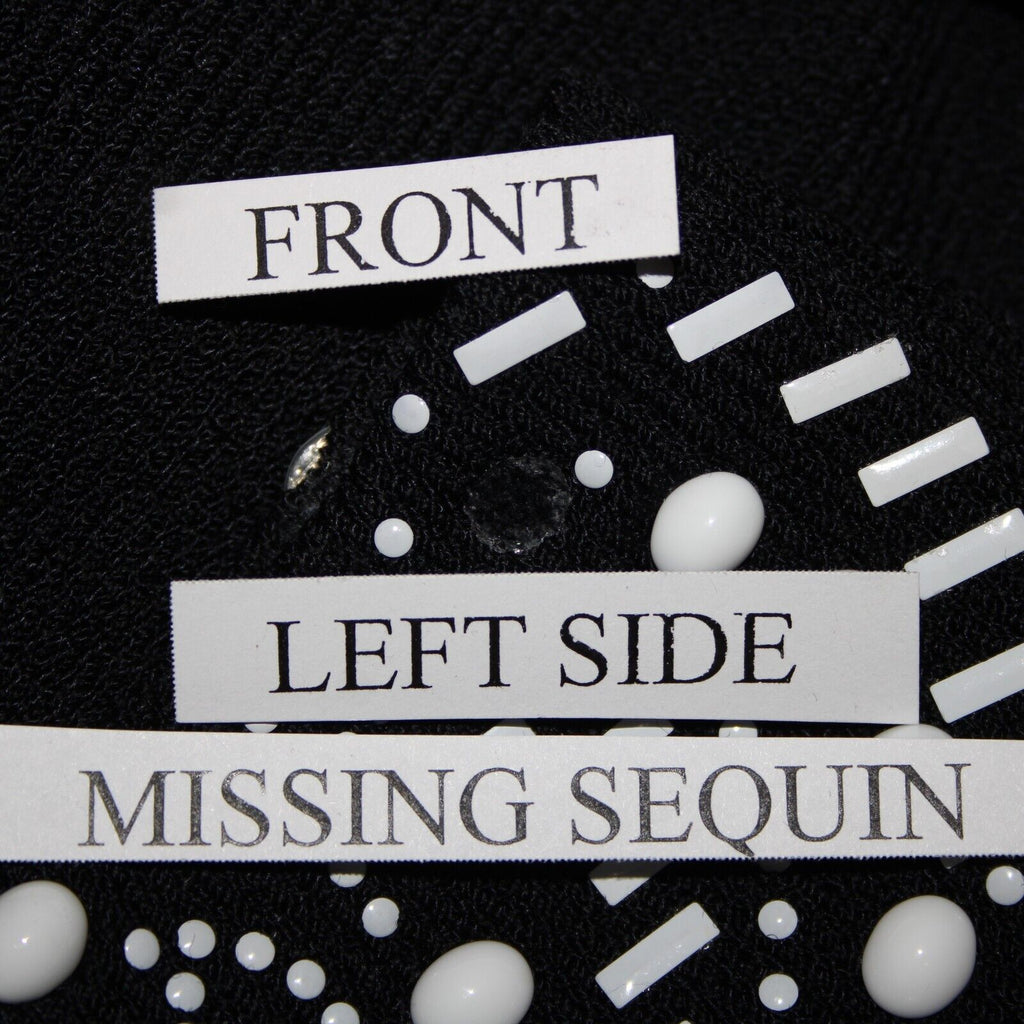 SEE PHOTOS, FRONT LEFT SIDE MISSING SEQUIN