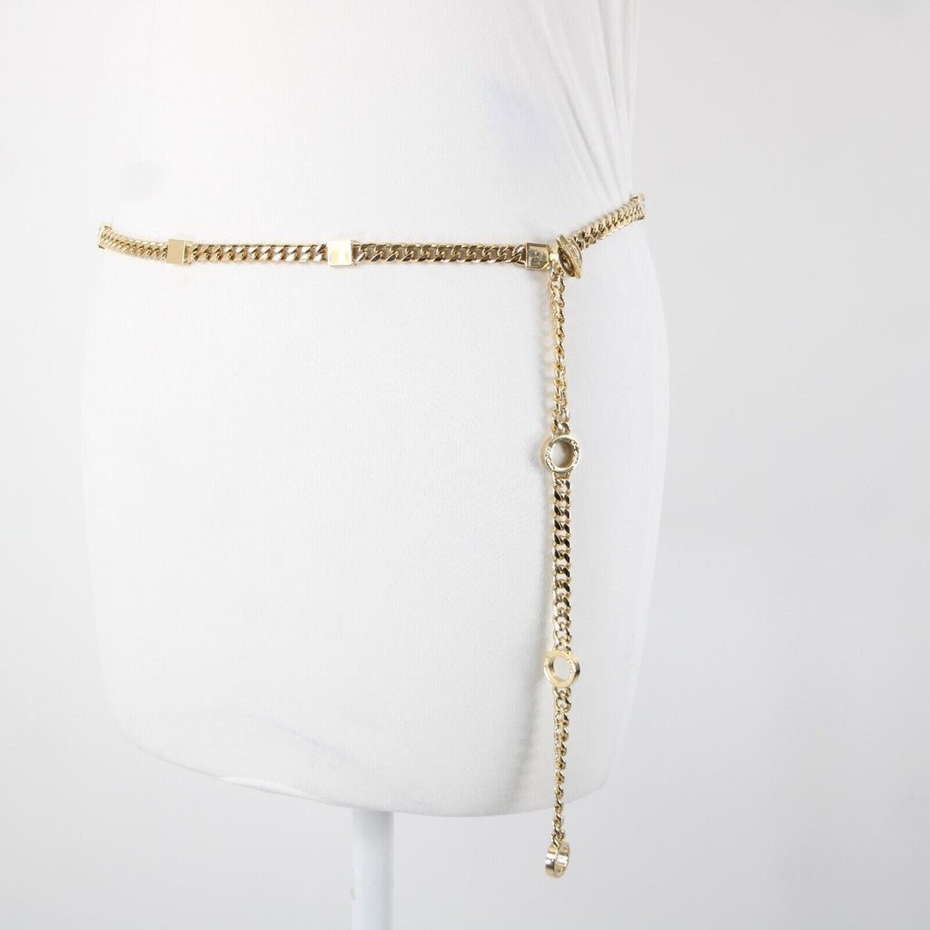 St John Couture Goldtone Chain Link SJ Station Logo Squares 45" Waist Chain Belt