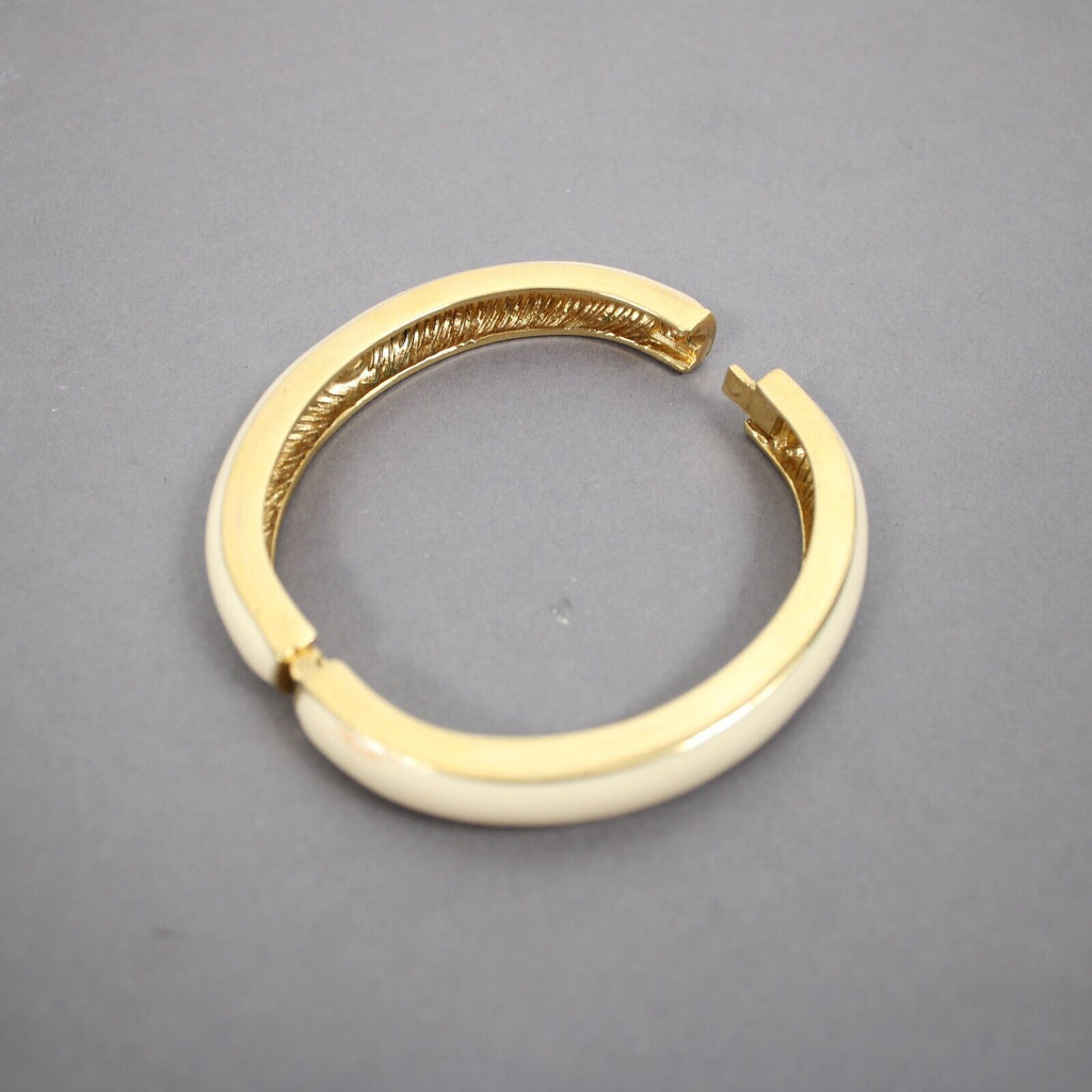 St John Couture Goldtone Hardware Cream Beige Enamel Push Lock Bangle Bracelet