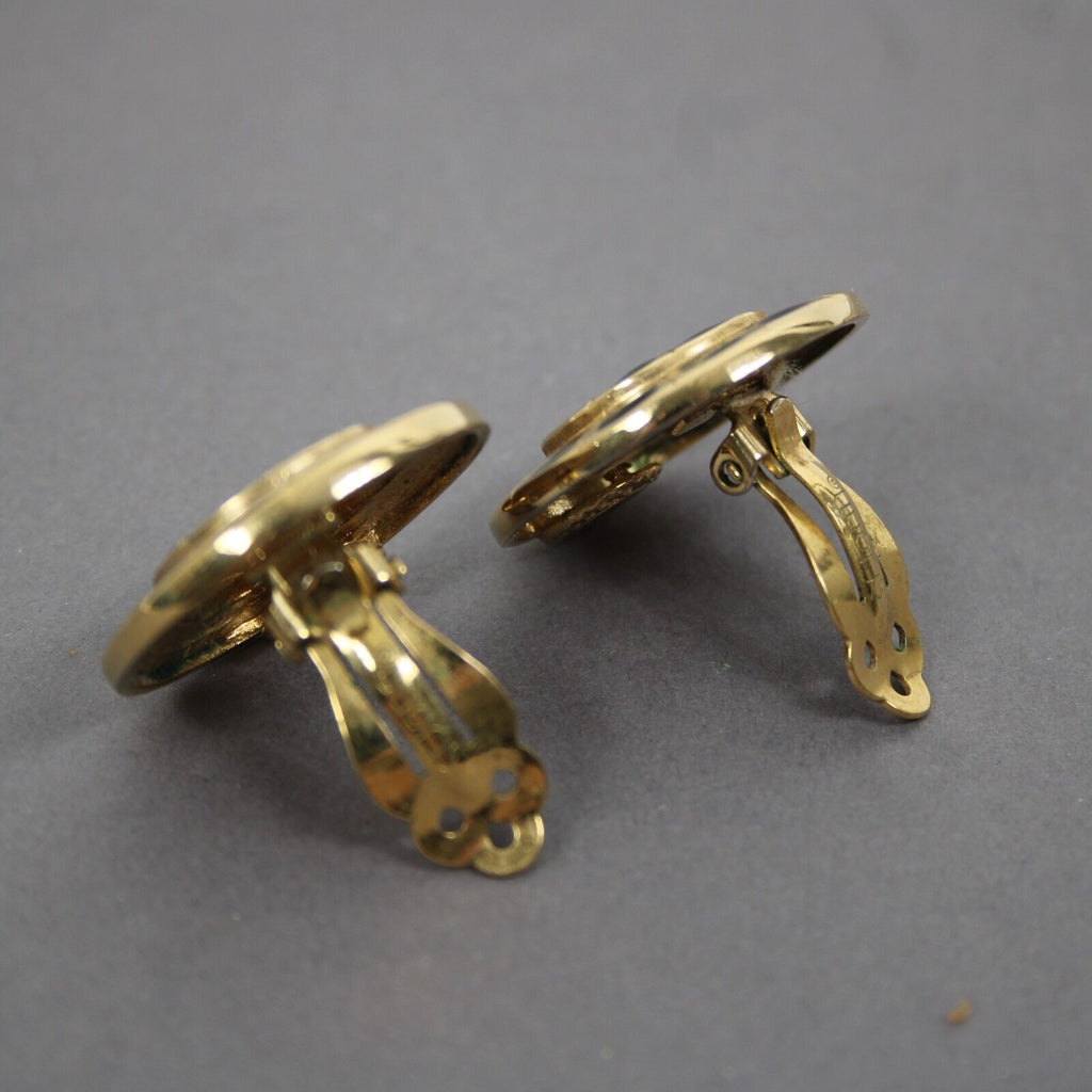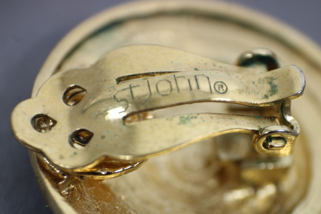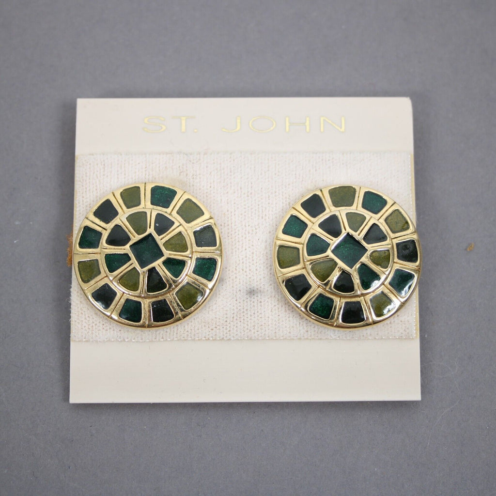 St John Couture Multi Color Green Inlaid Enamel 1" Clip On Earrings