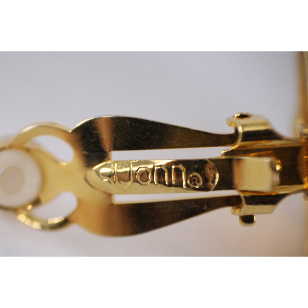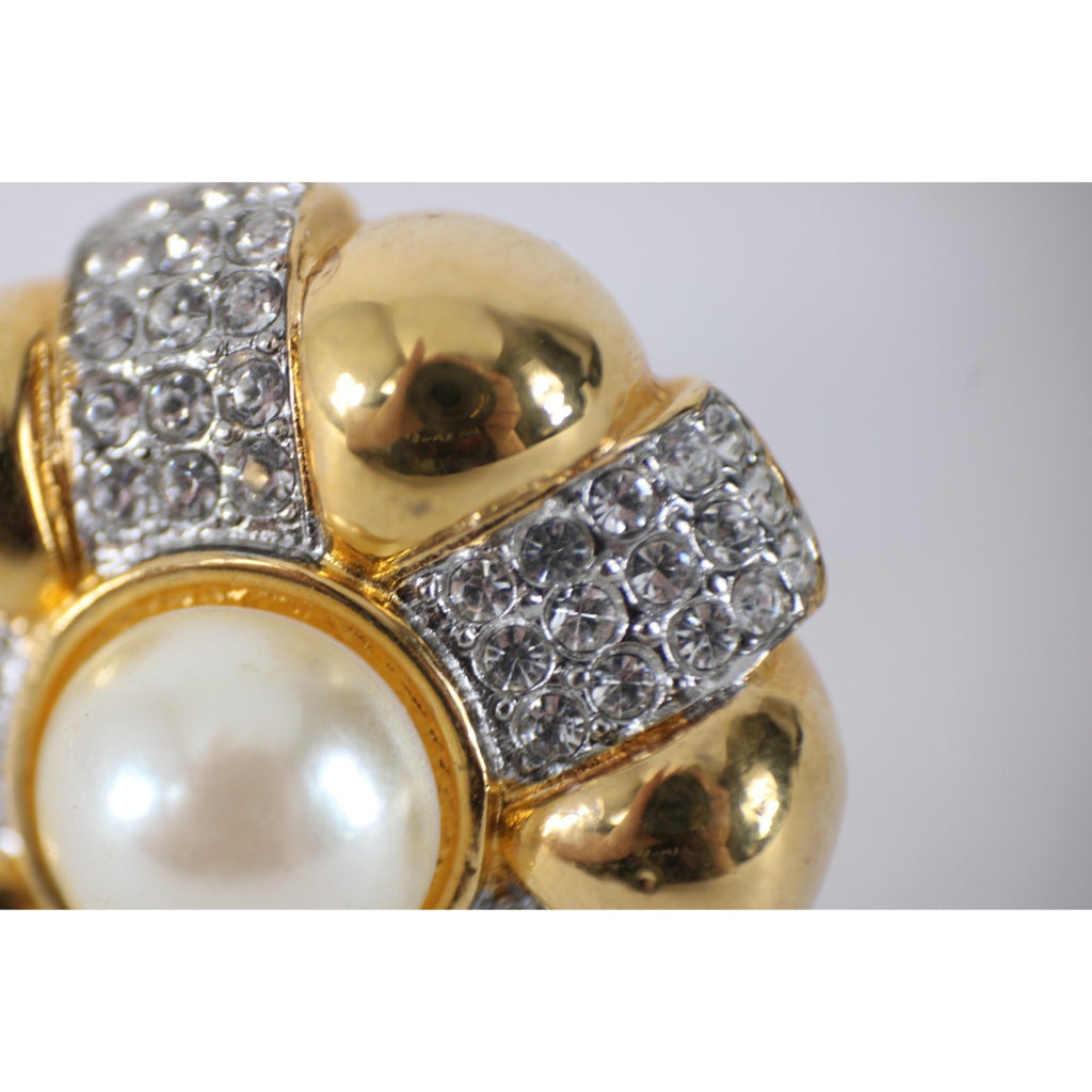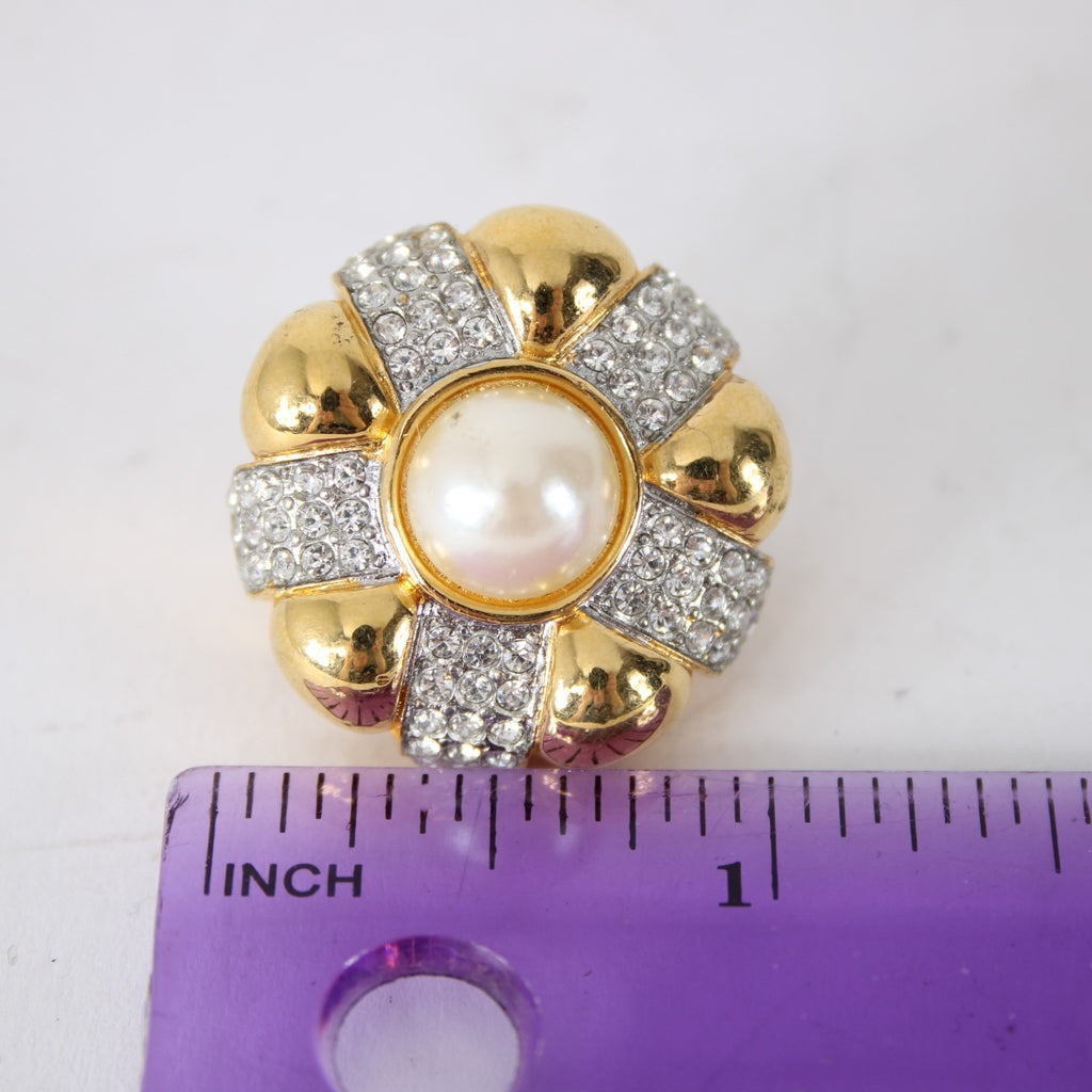 St John Earrings Goldtone CZ Faux Pearl 1" Clip On Earrings