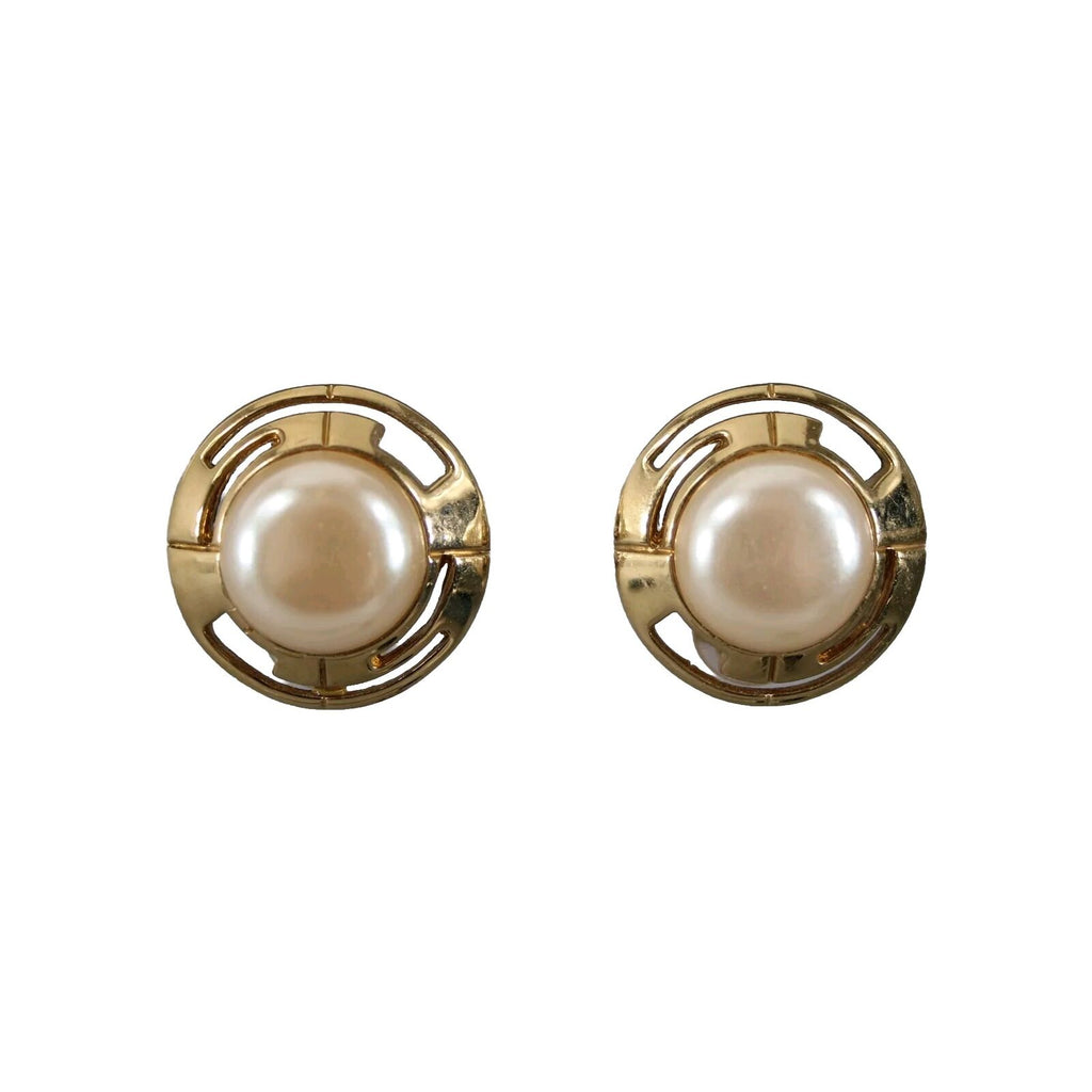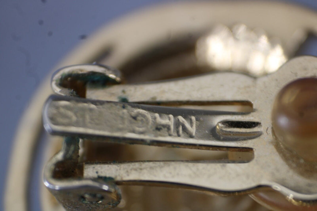 St John Goldtone Cream Faux Pearl 1" Clip On Earrings