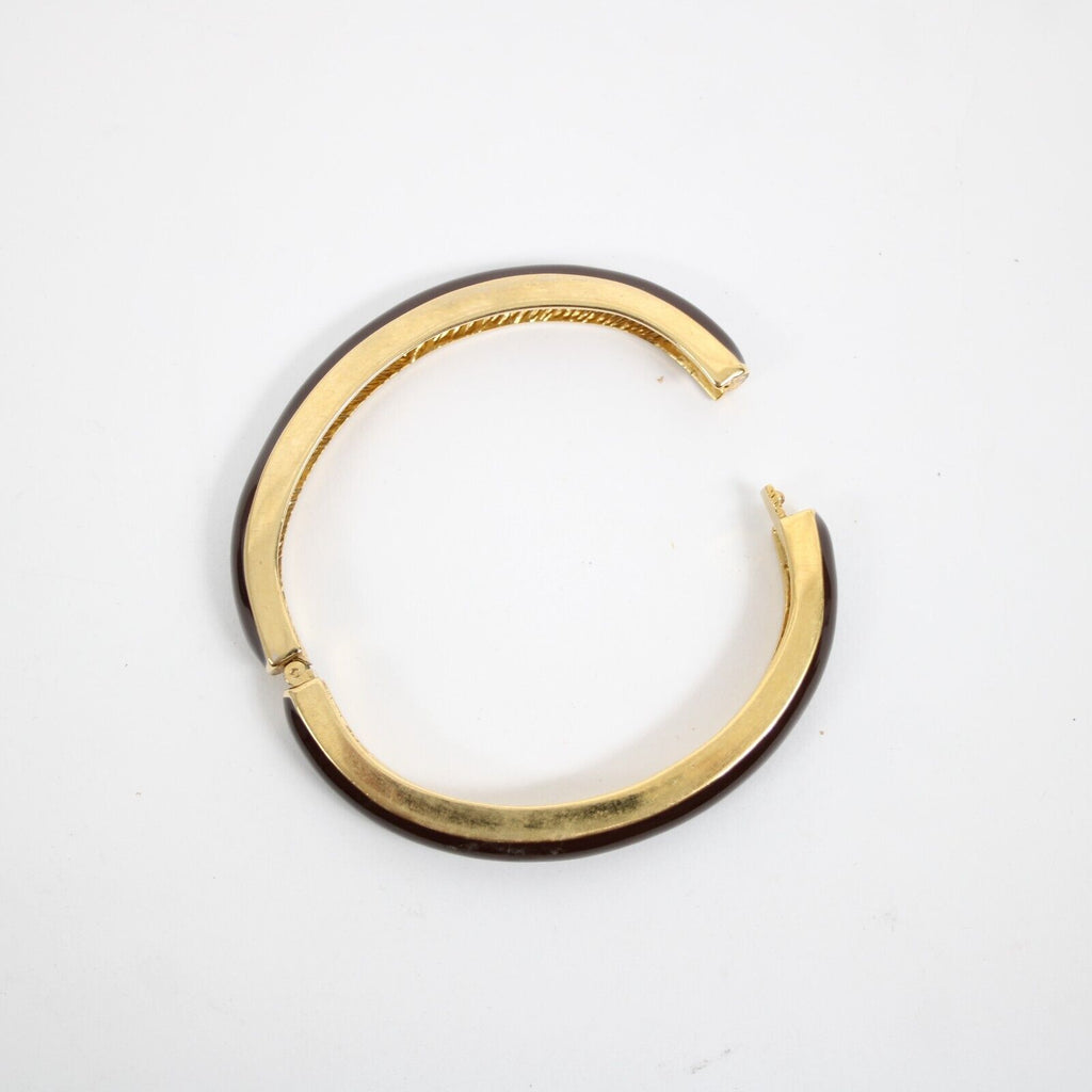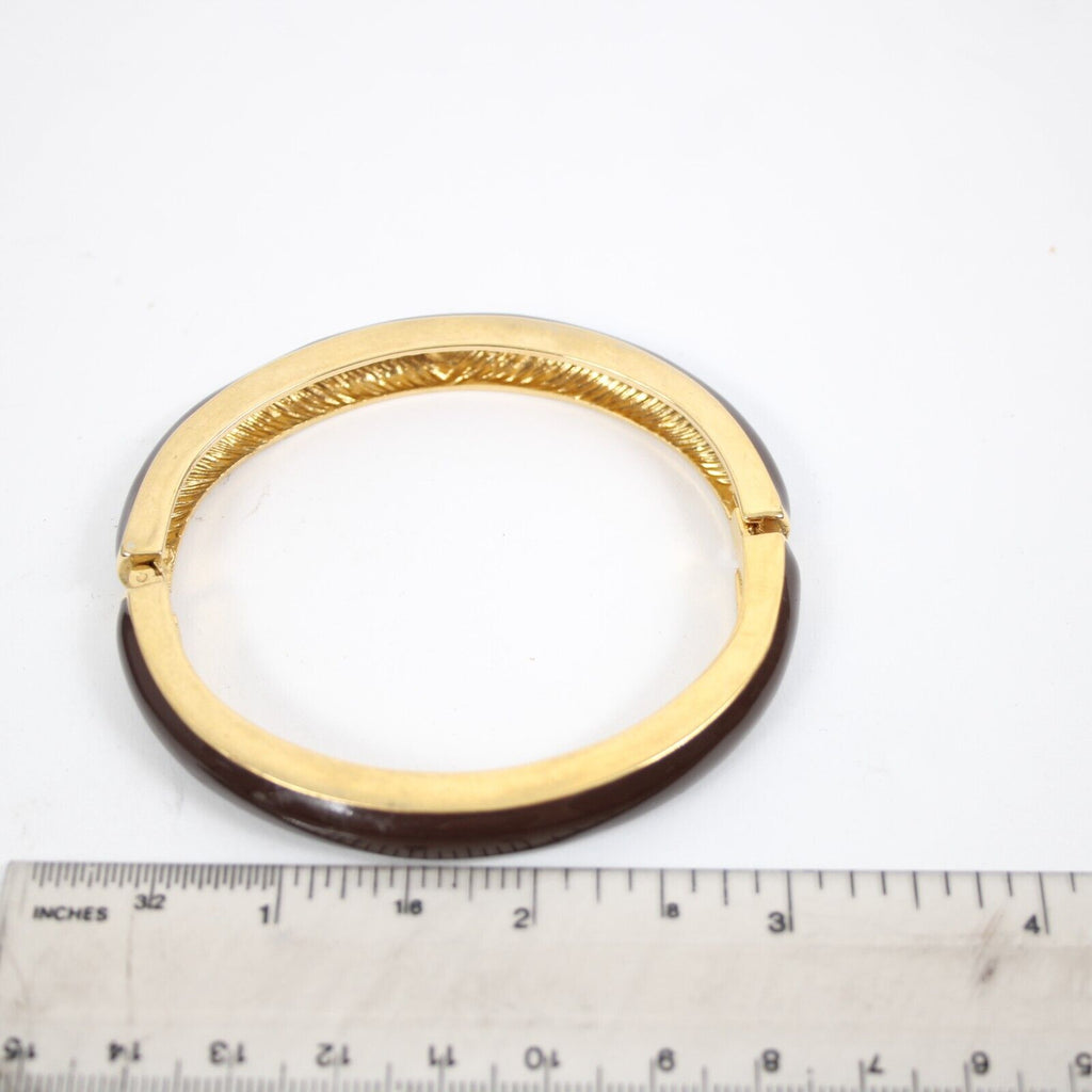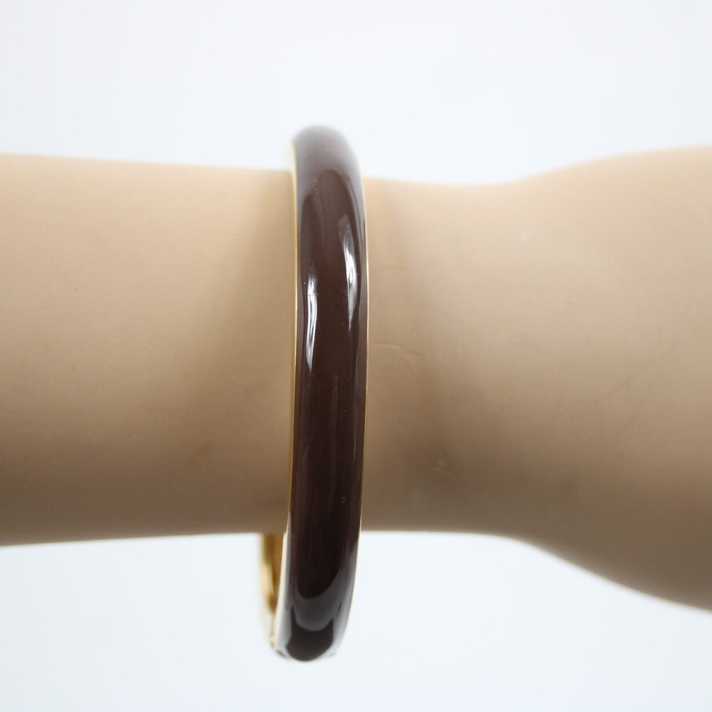 St John Goldtone Hardware Brown Enamel Push Lock Bangle Bracelet