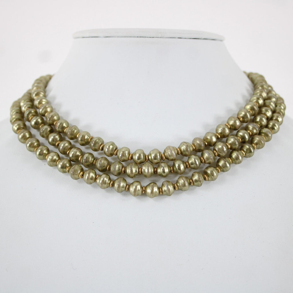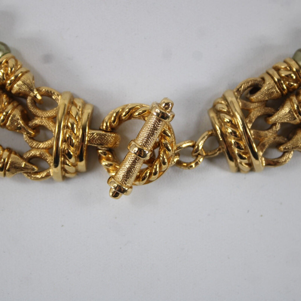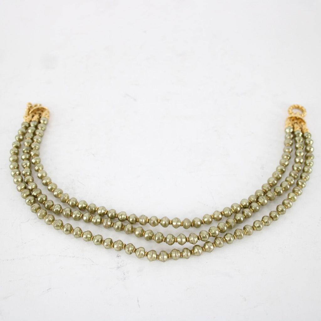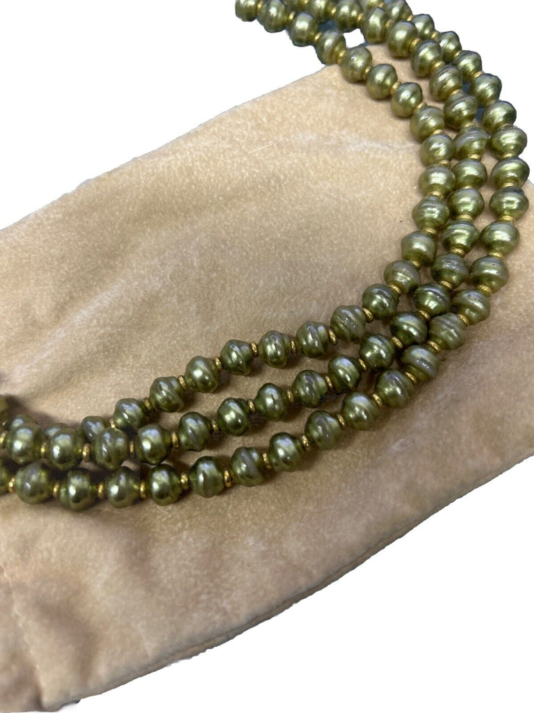 St John Moss Green Goldtone Faux Pearls 3 Strands 16" AS IS Necklace