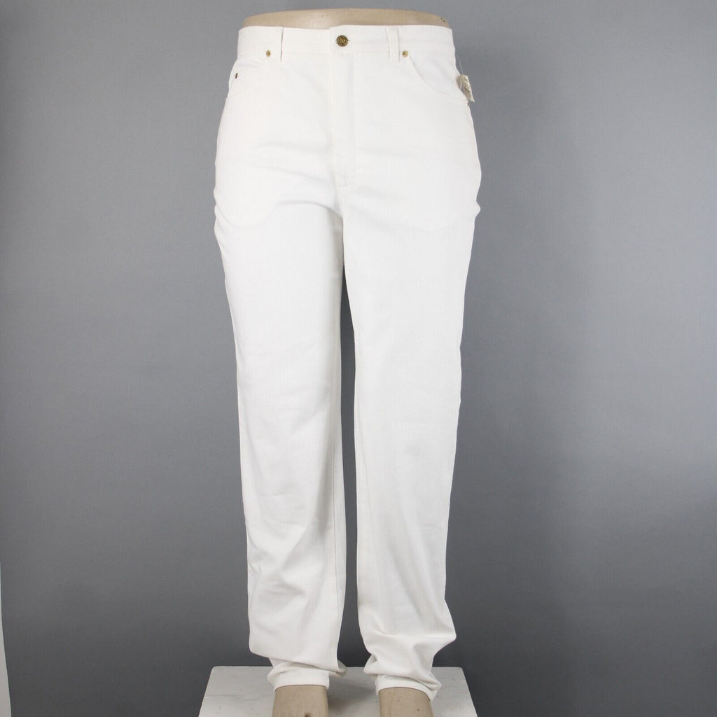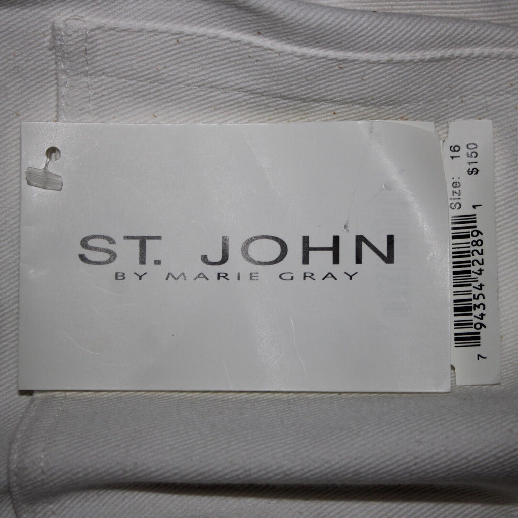 St John NEW Signature Sz 16 x 35 White Denim Pockets Straight Leg Cotton Jeans