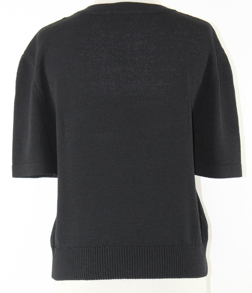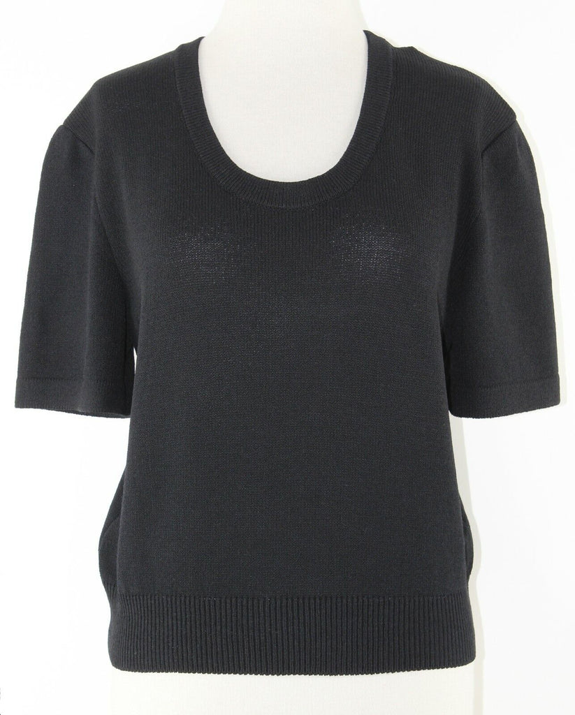 St John Sz M Black Scoop Neck Pullover Santana Knit Wool Blend Top