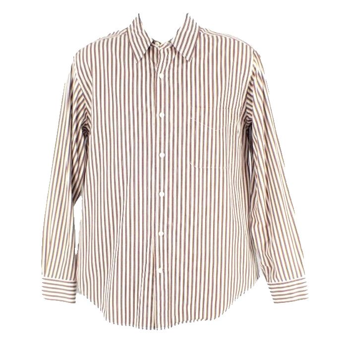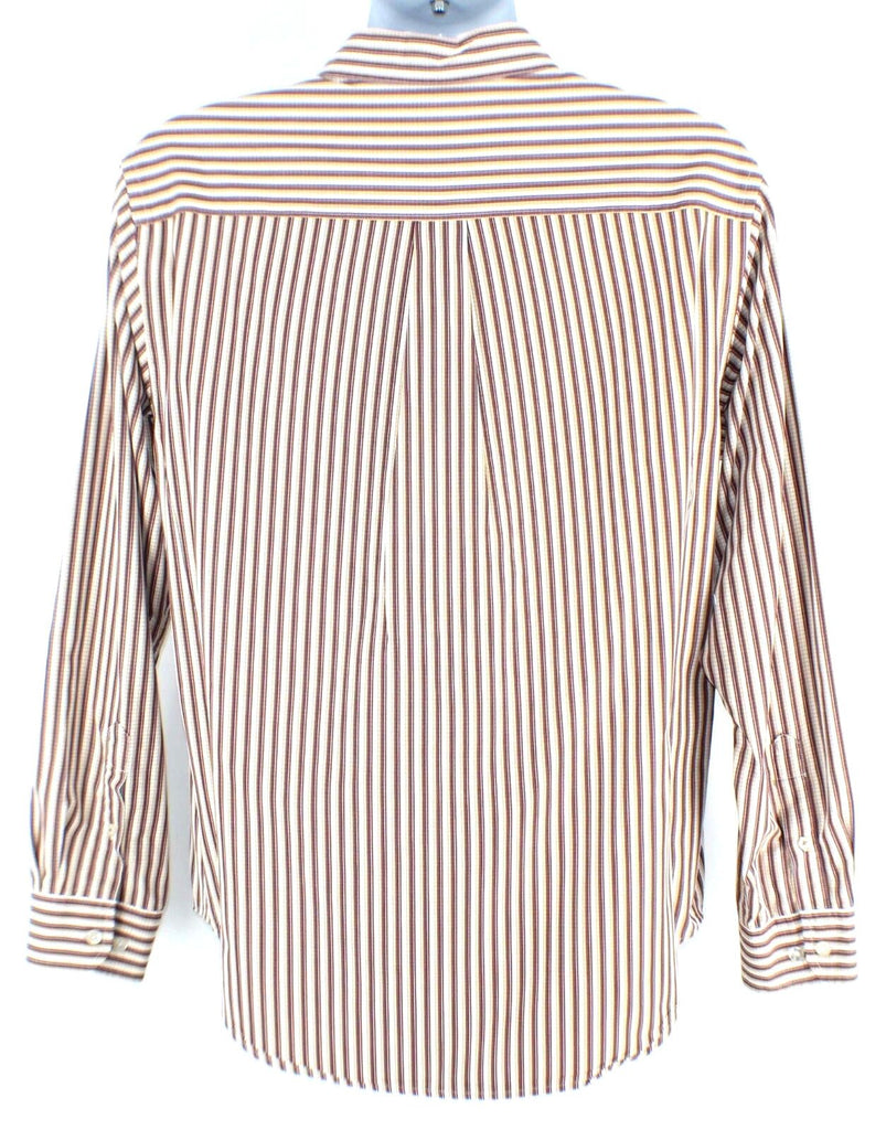 St Johns Bay Sz M Tan Red Blue White Stripe Cotton Shirt