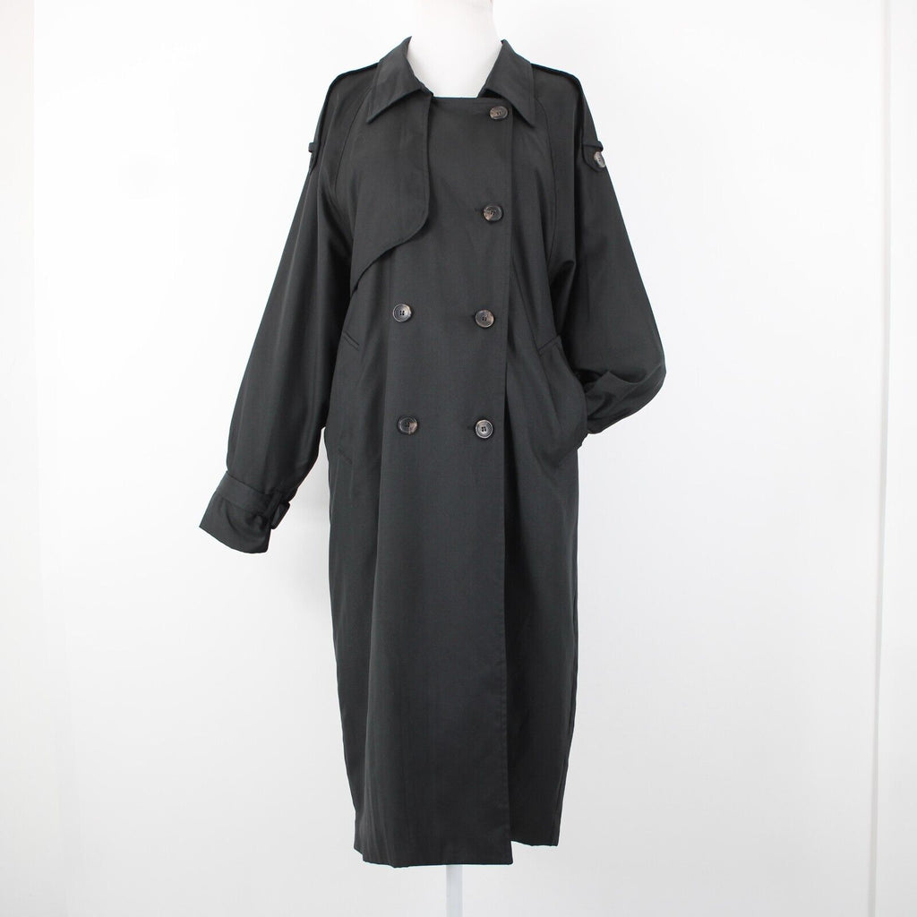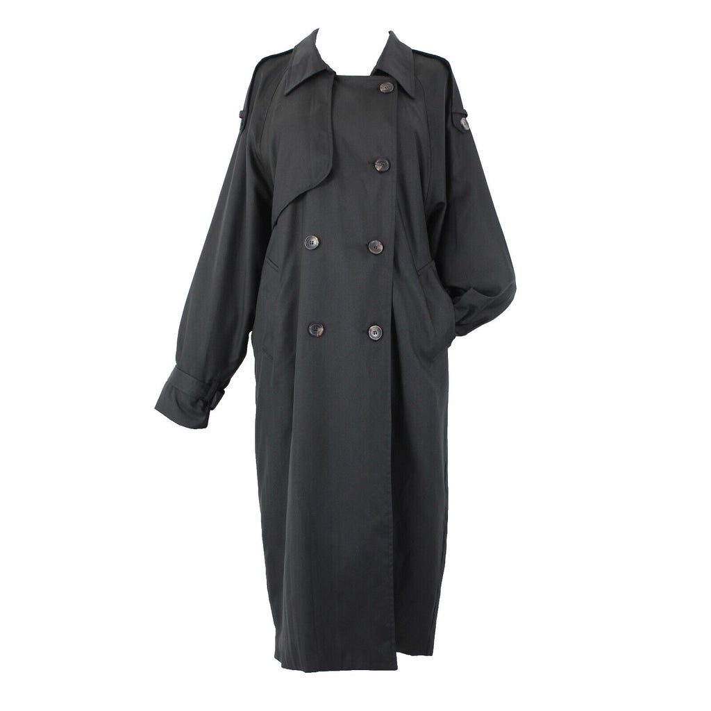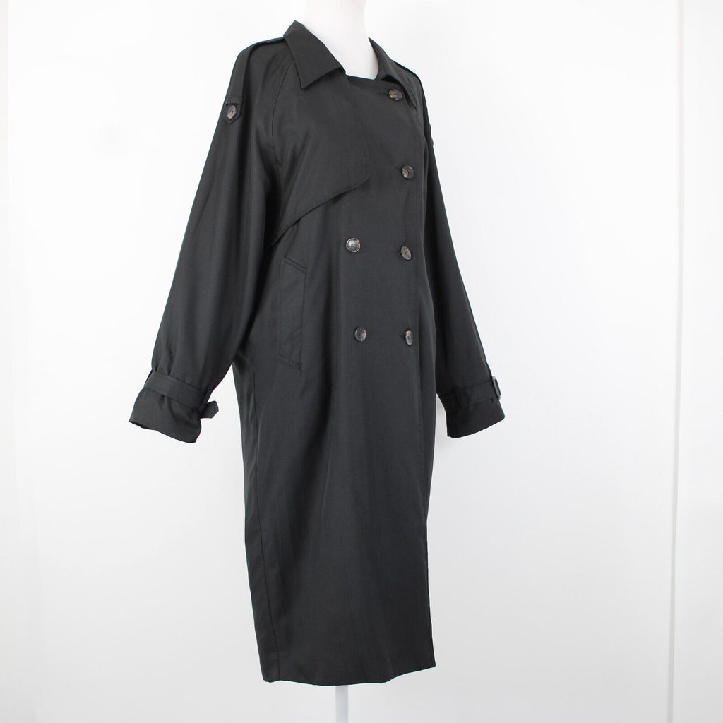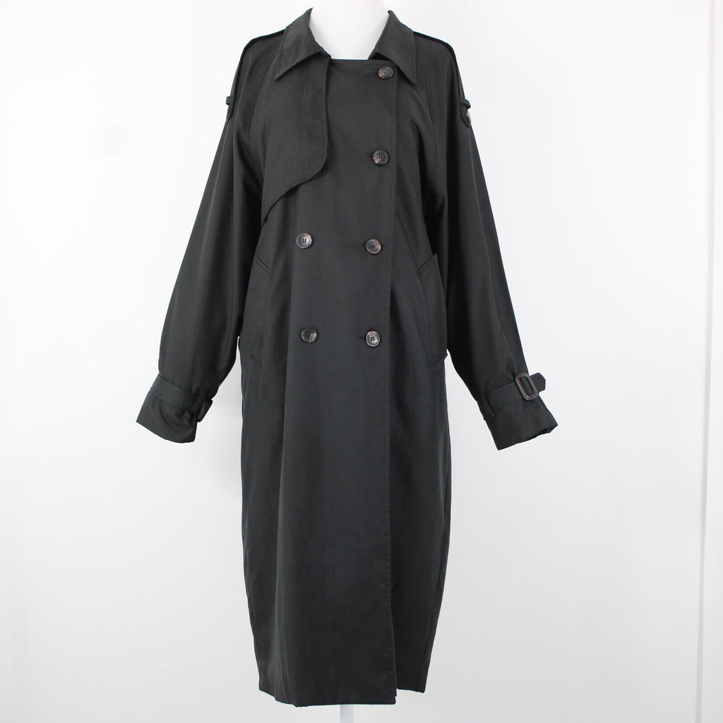 Stella Sz S/M Black Pockets Lined Collared Buttons 100% Polyester No Belt Coat