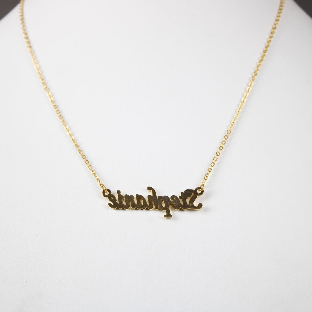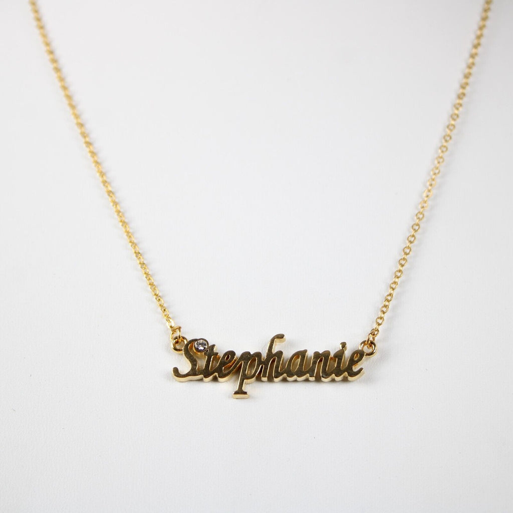 STEPHANIE NEW Name Goldtone Rhinestone Accent 14.5"w4.5" Multi Ring Ext Necklace