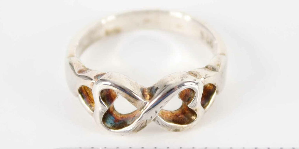 Sterling Silver Sz 8.25 Double Heart Ring