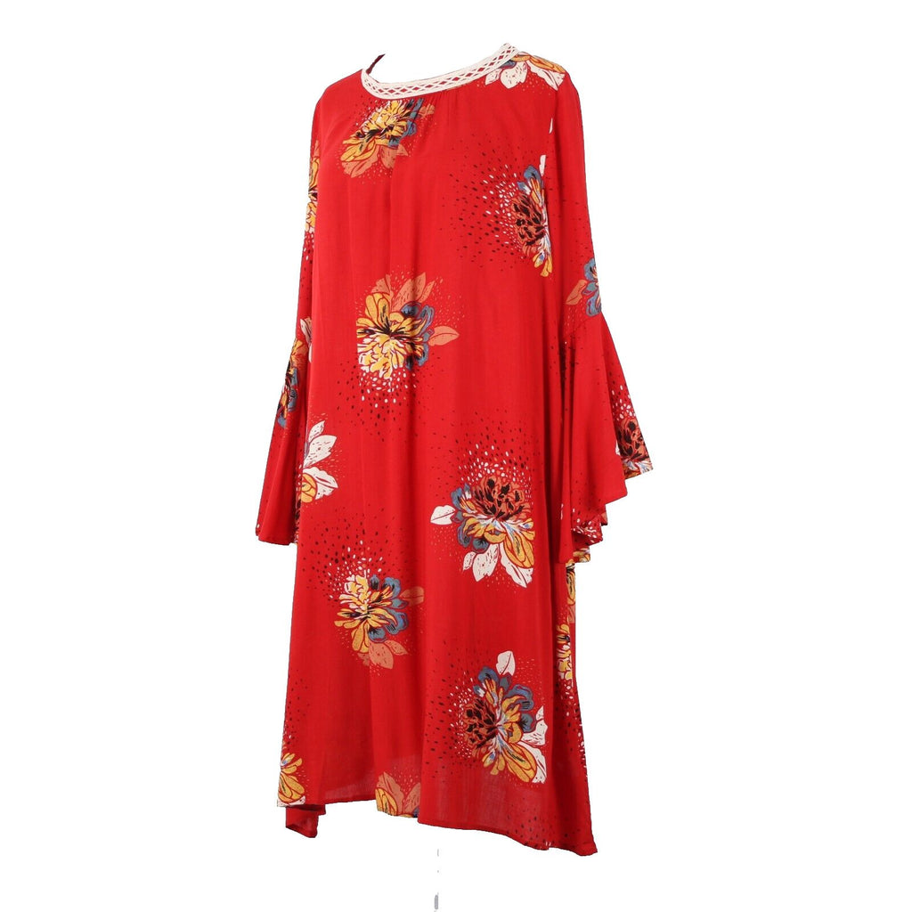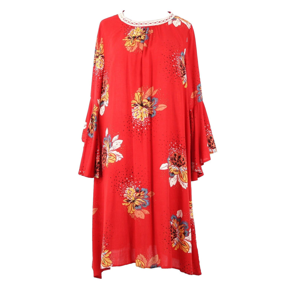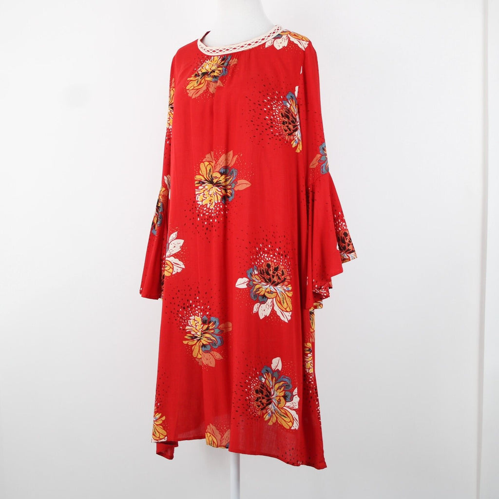Stevie Hender Sz 8 Red Cream Multi Floral Bell Sleeve A Line 100% Rayon Dress