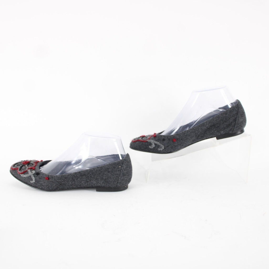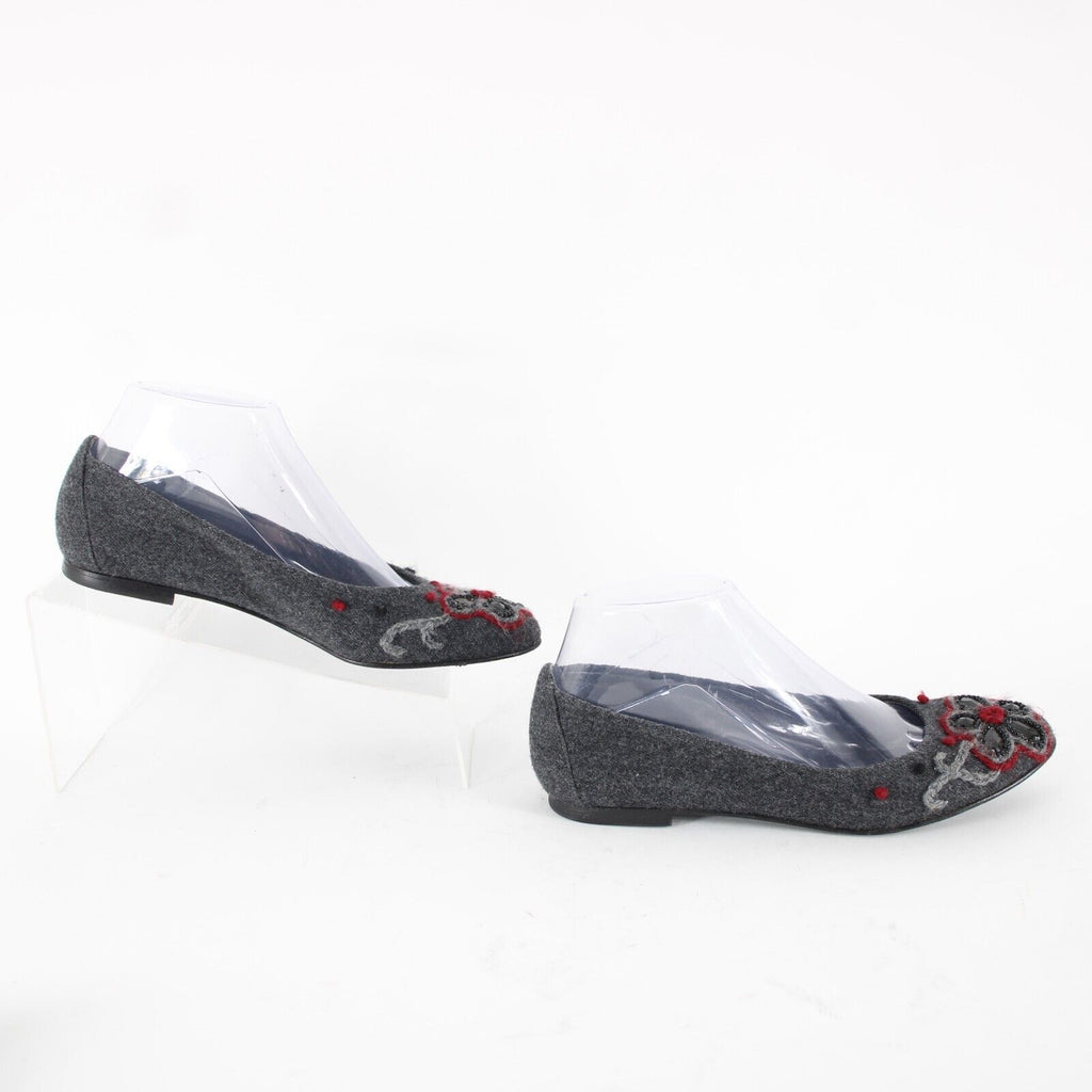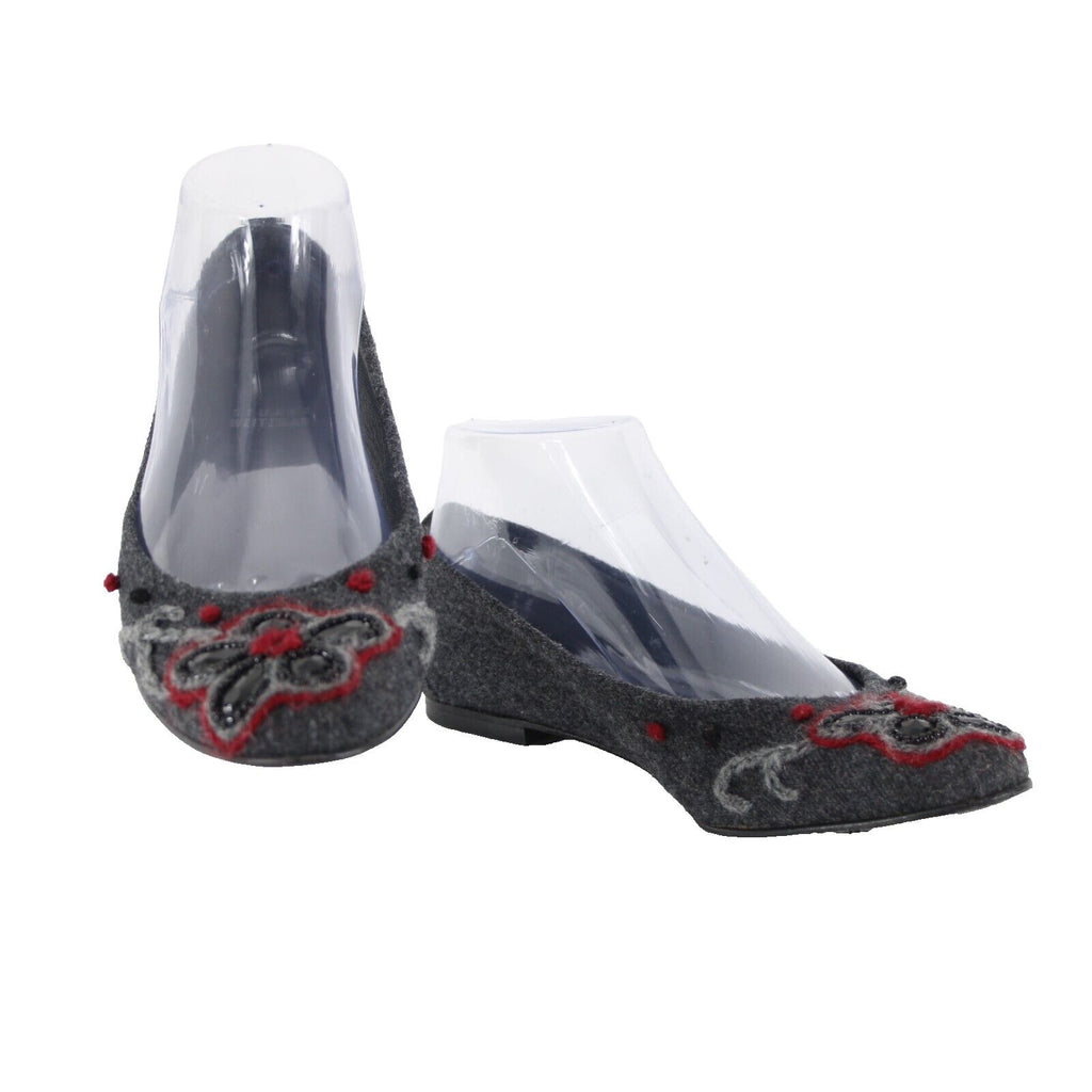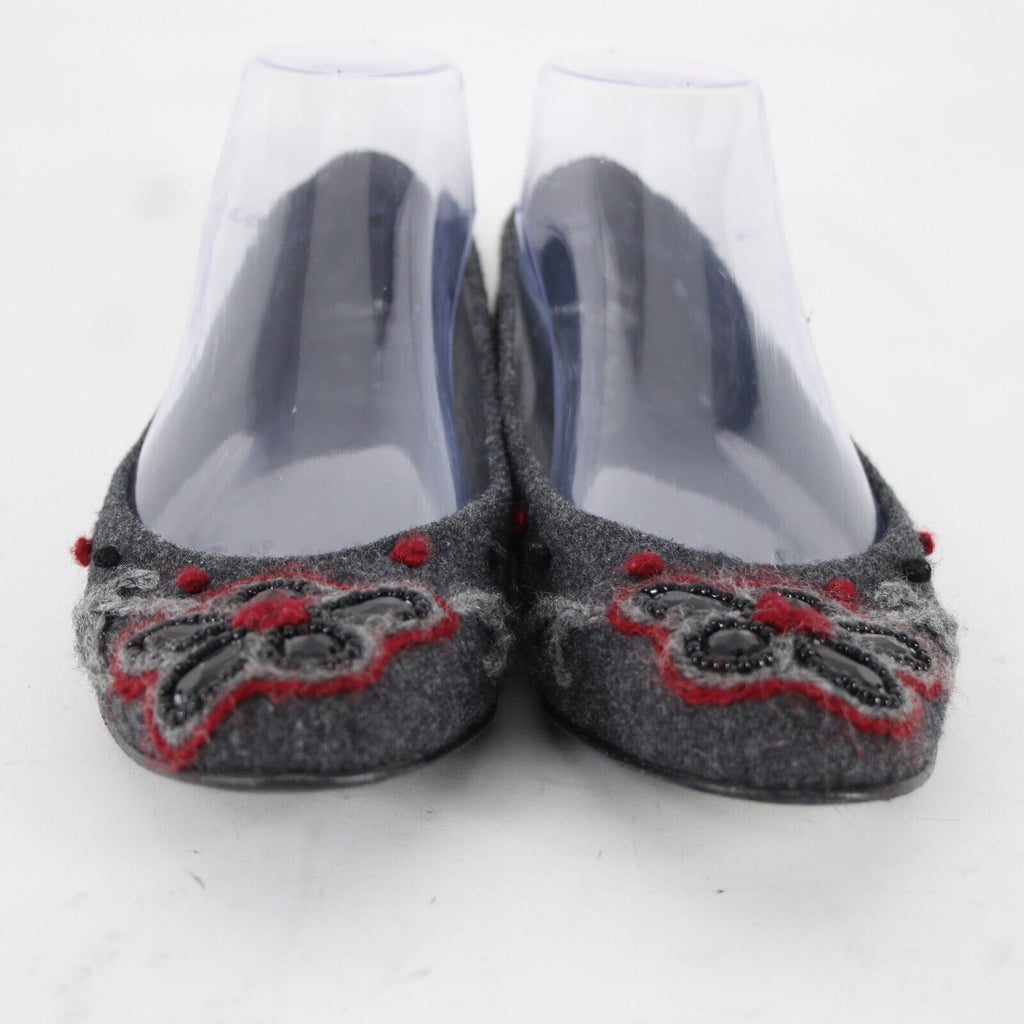 Stuart Weitzman Sz 6 M Gray Burgundy Black Bead Fabric Upper Leather Inner Flats