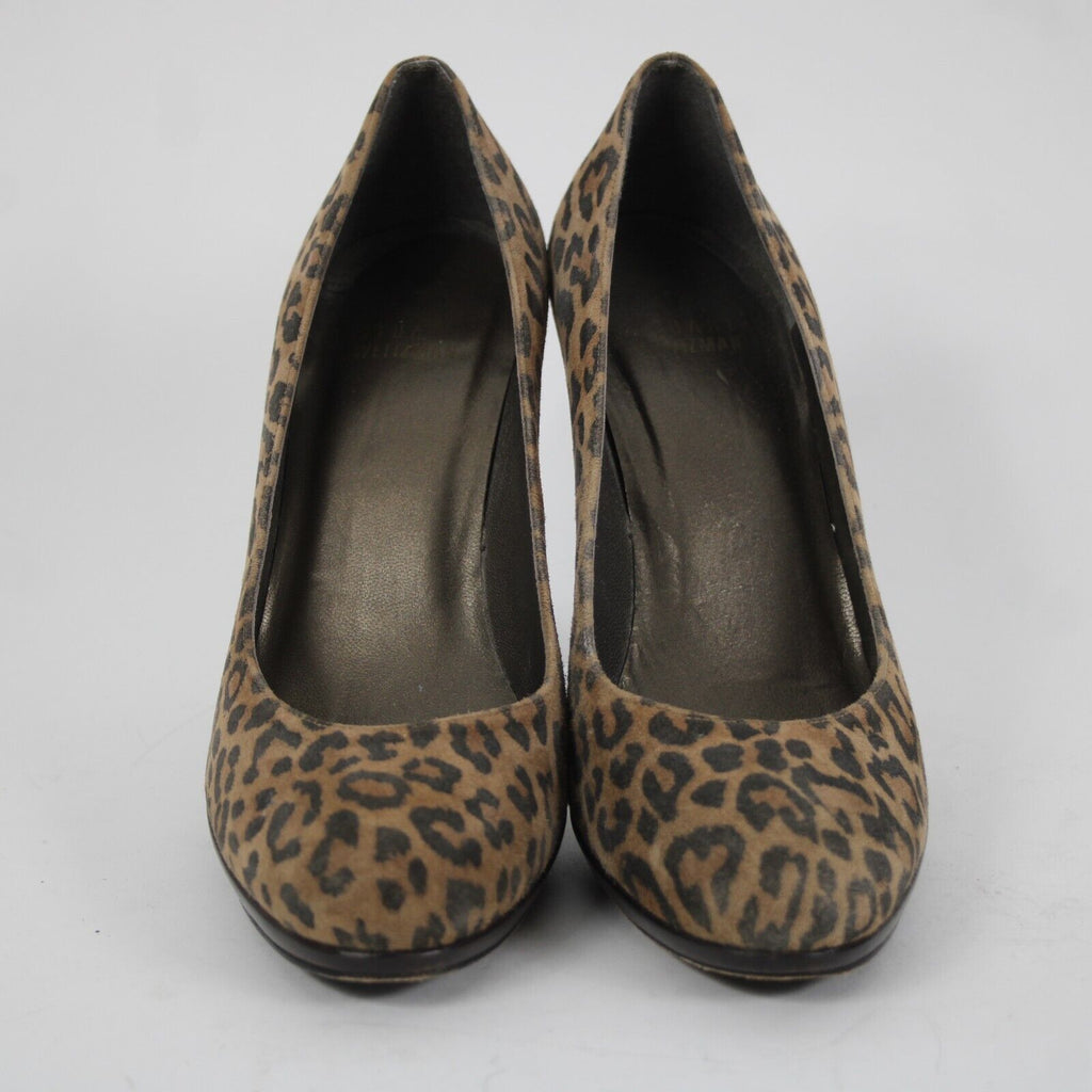 Stuart Weitzman Sz 9 M Brown Animal Print Leather Fabric Upper 4.5" Heels