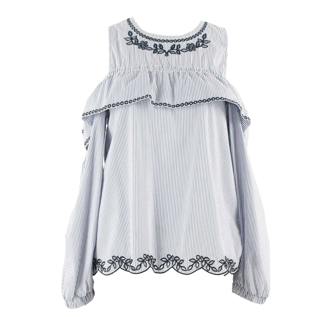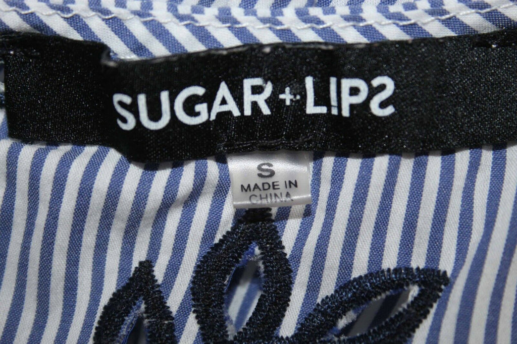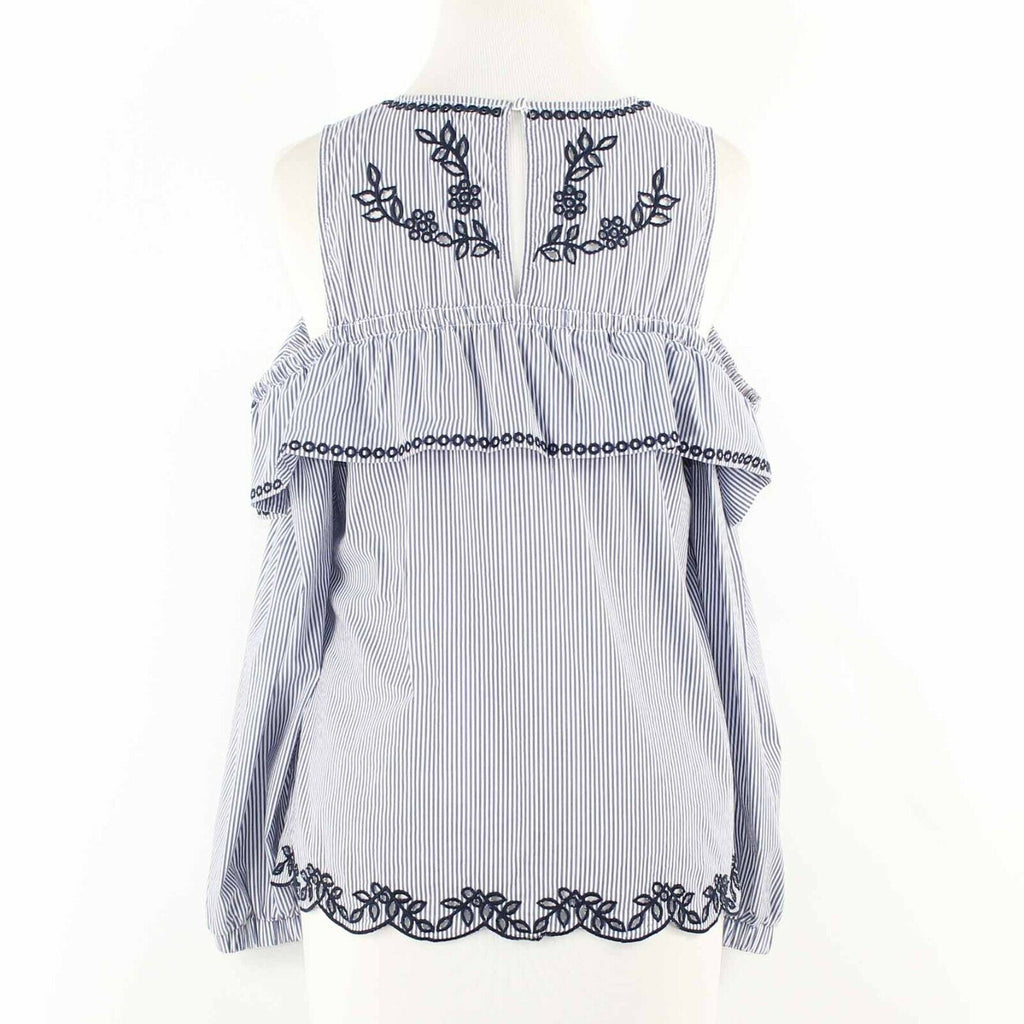 Sugar Lips Sz S Blue Multi Embroidered Off Cold Shoulder Poly Blend Top
