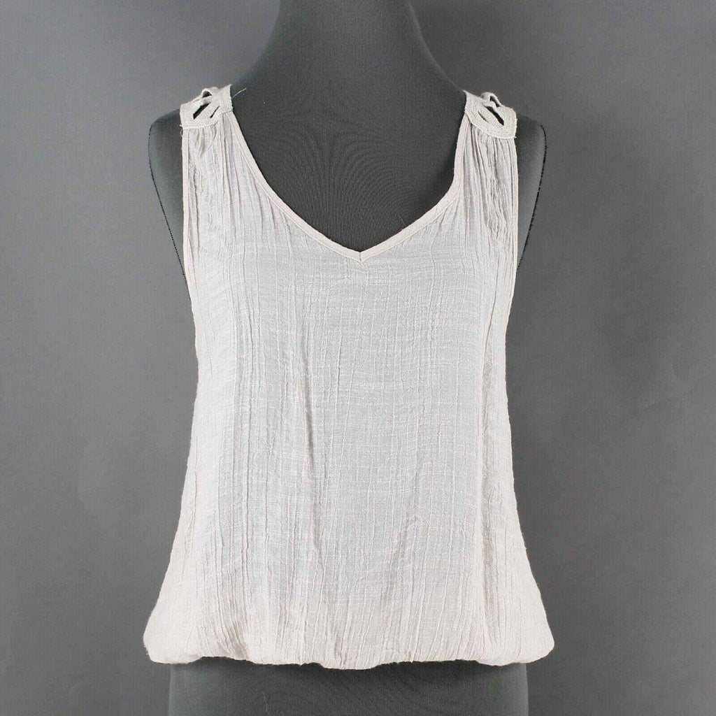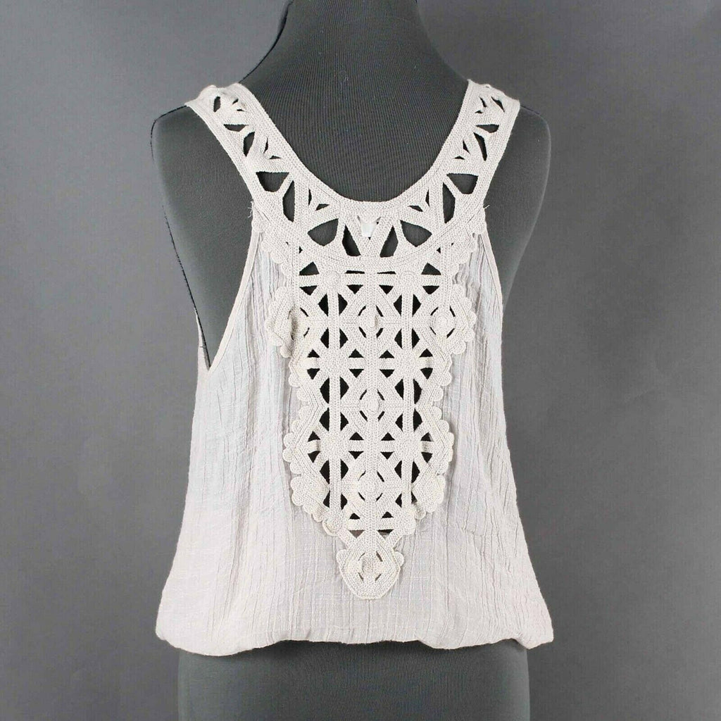 Sugar Rain Sz M Beige Back Crochet Elastic Hem Rayon Poly Cotton Top