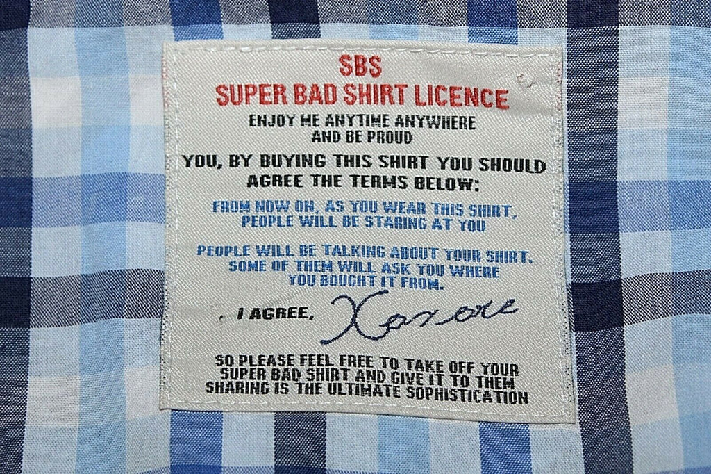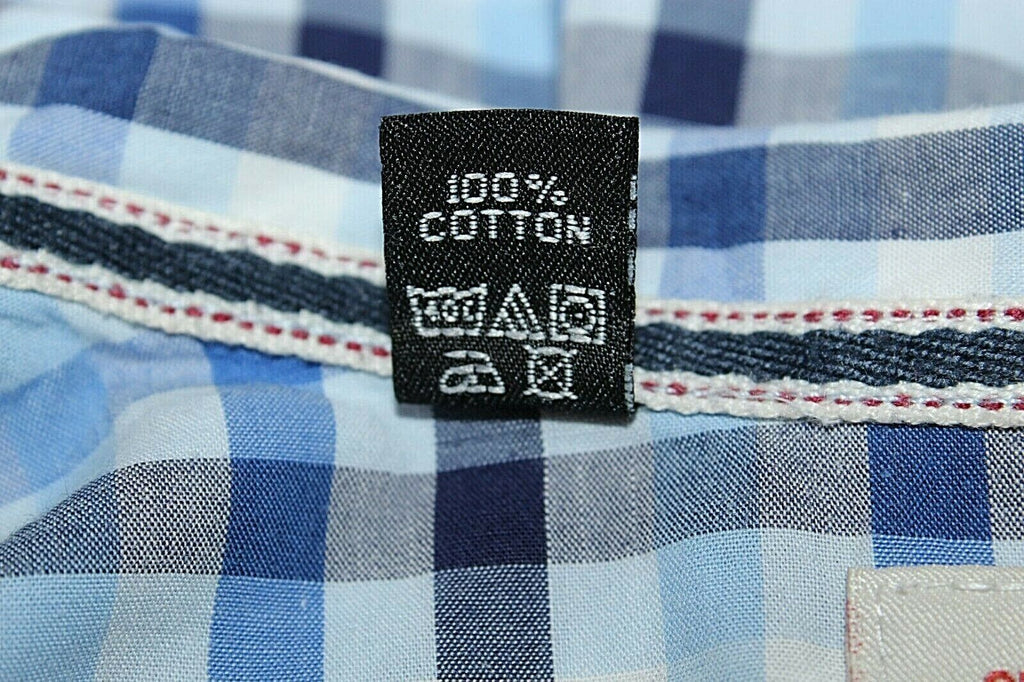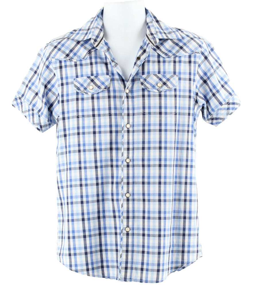 Super Bad Sz S Blue Navy White Plaid Snap Front 100% Cotton Men's Shirt