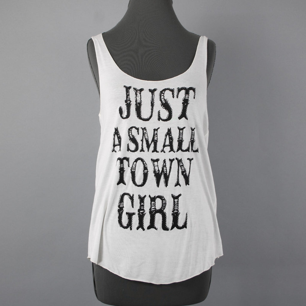 Sweet Claire Sz M Cream Dark Brown 'Just A Small Town Girl' Rayon Blend Tank Top