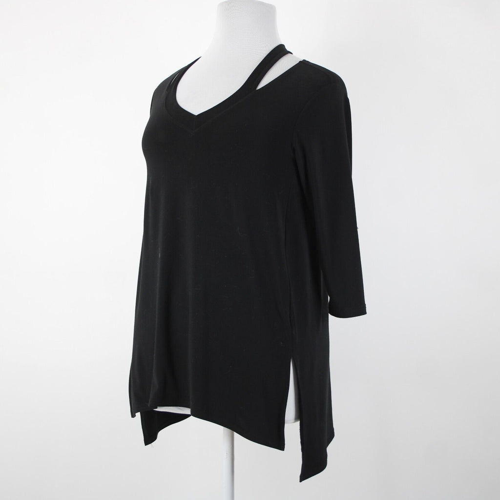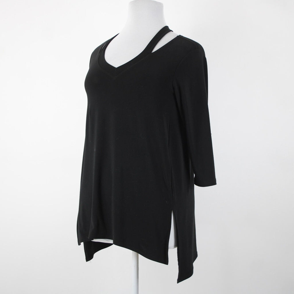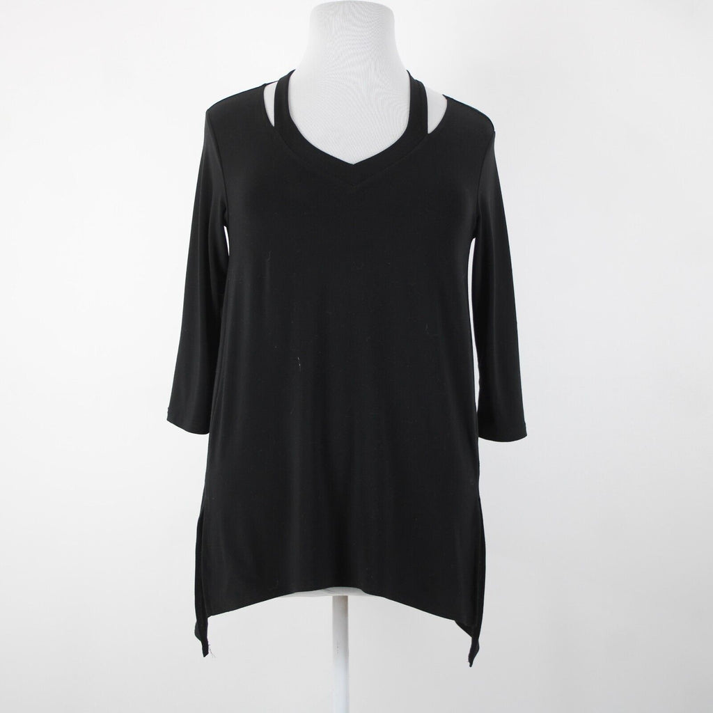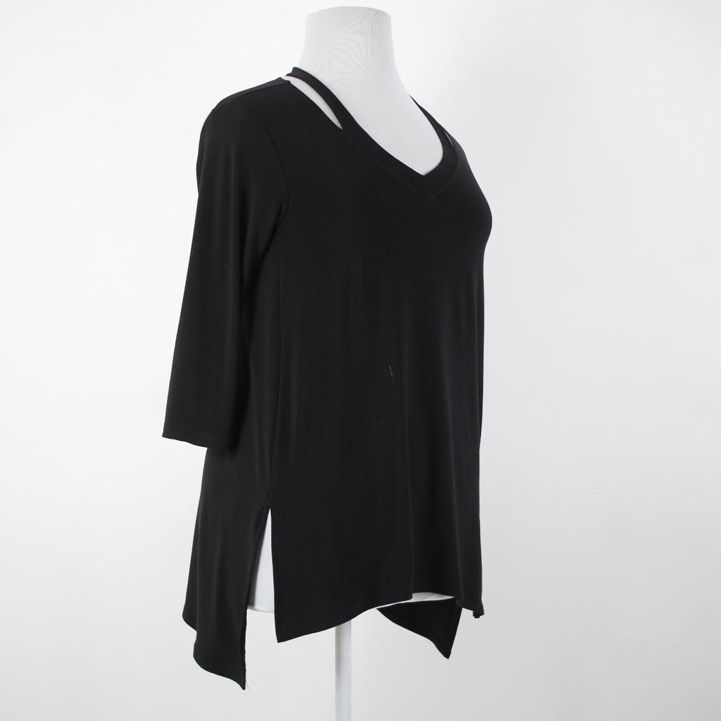 Sympli Sz 10 Black Cold Collar Asymmetrical V Neck Jersey Top
