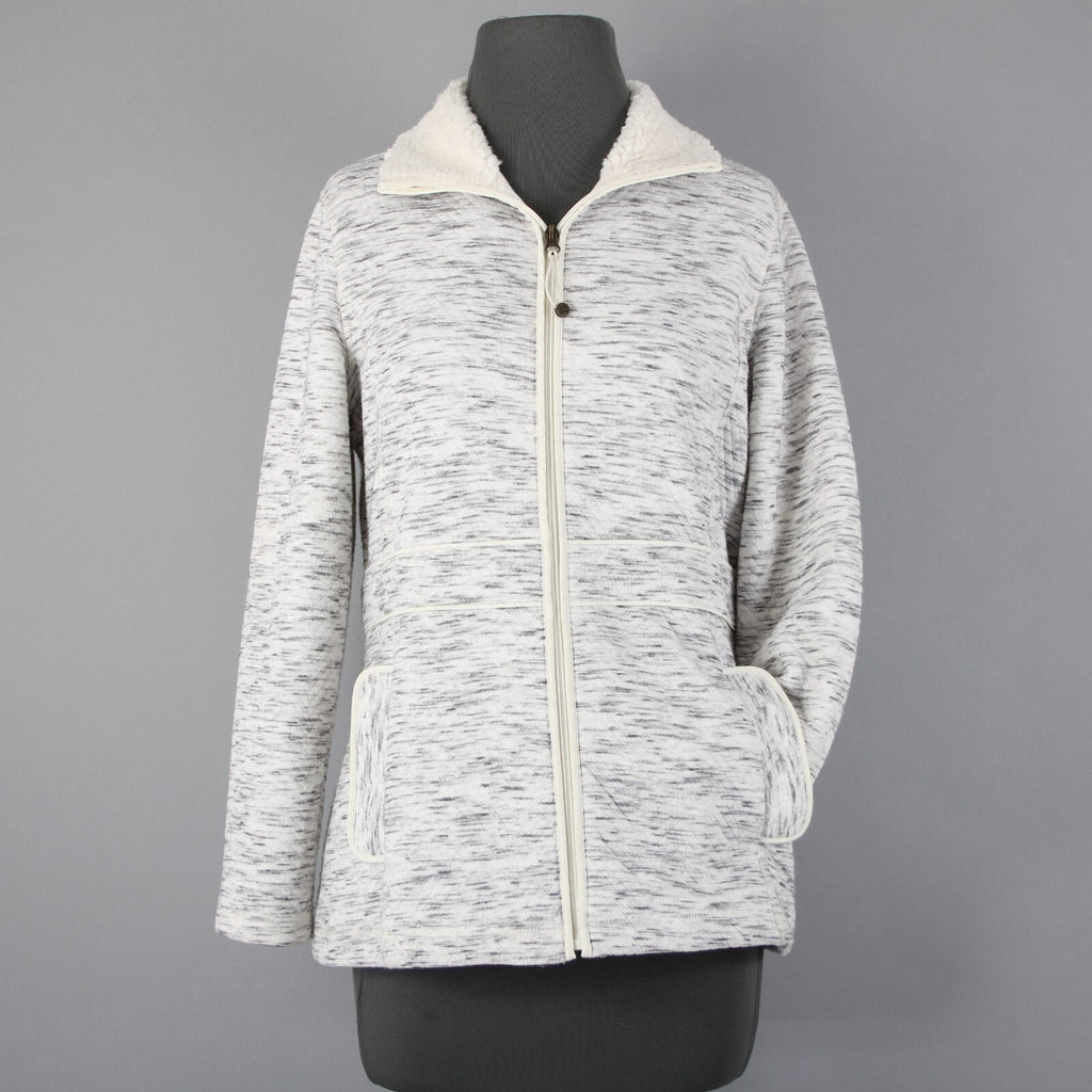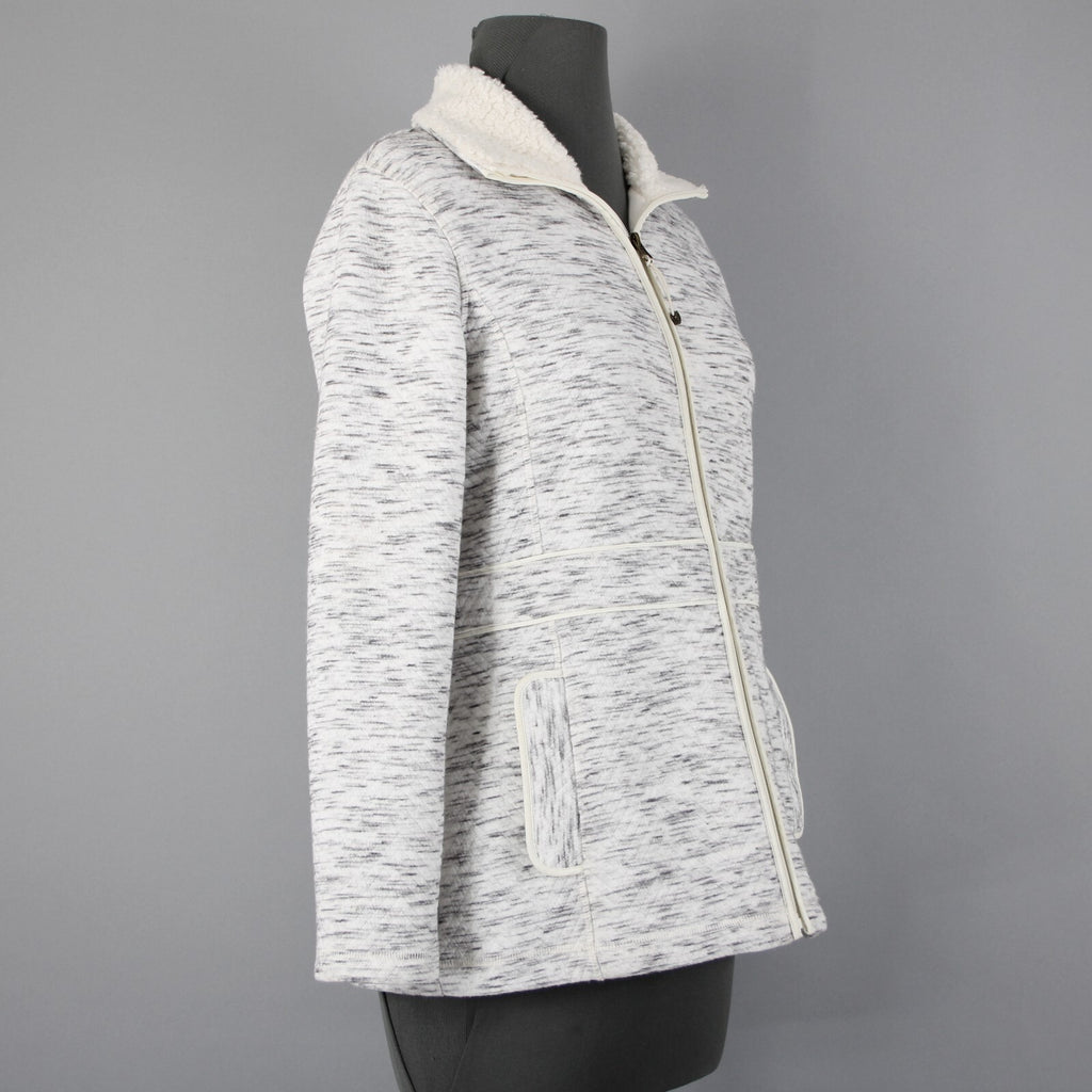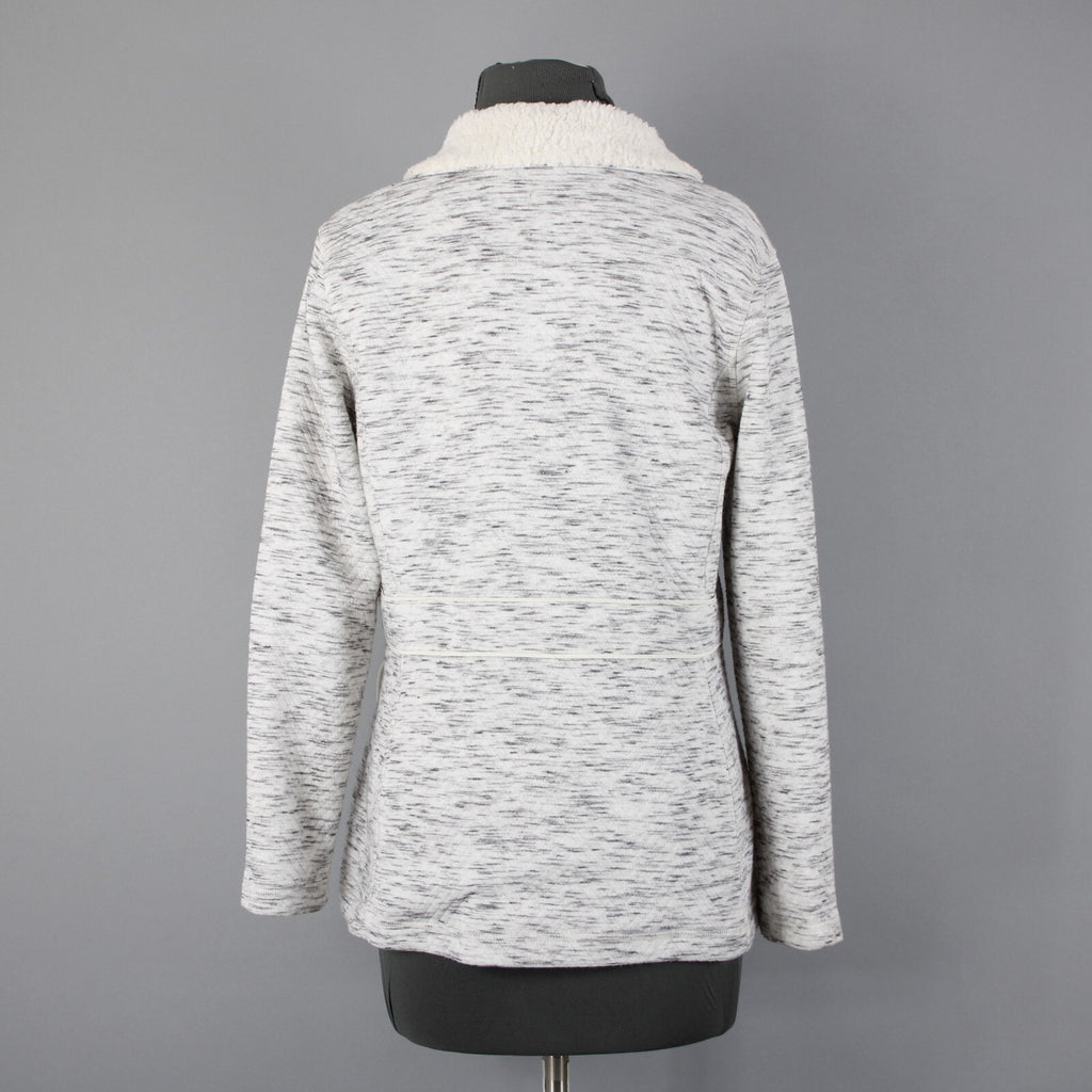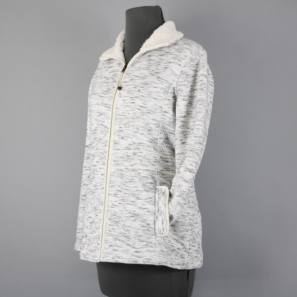 T By Talbots Sz SP White Gray Collared Pockets Zipper Faux Fur Poly Jacket