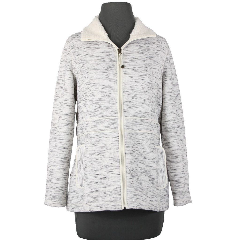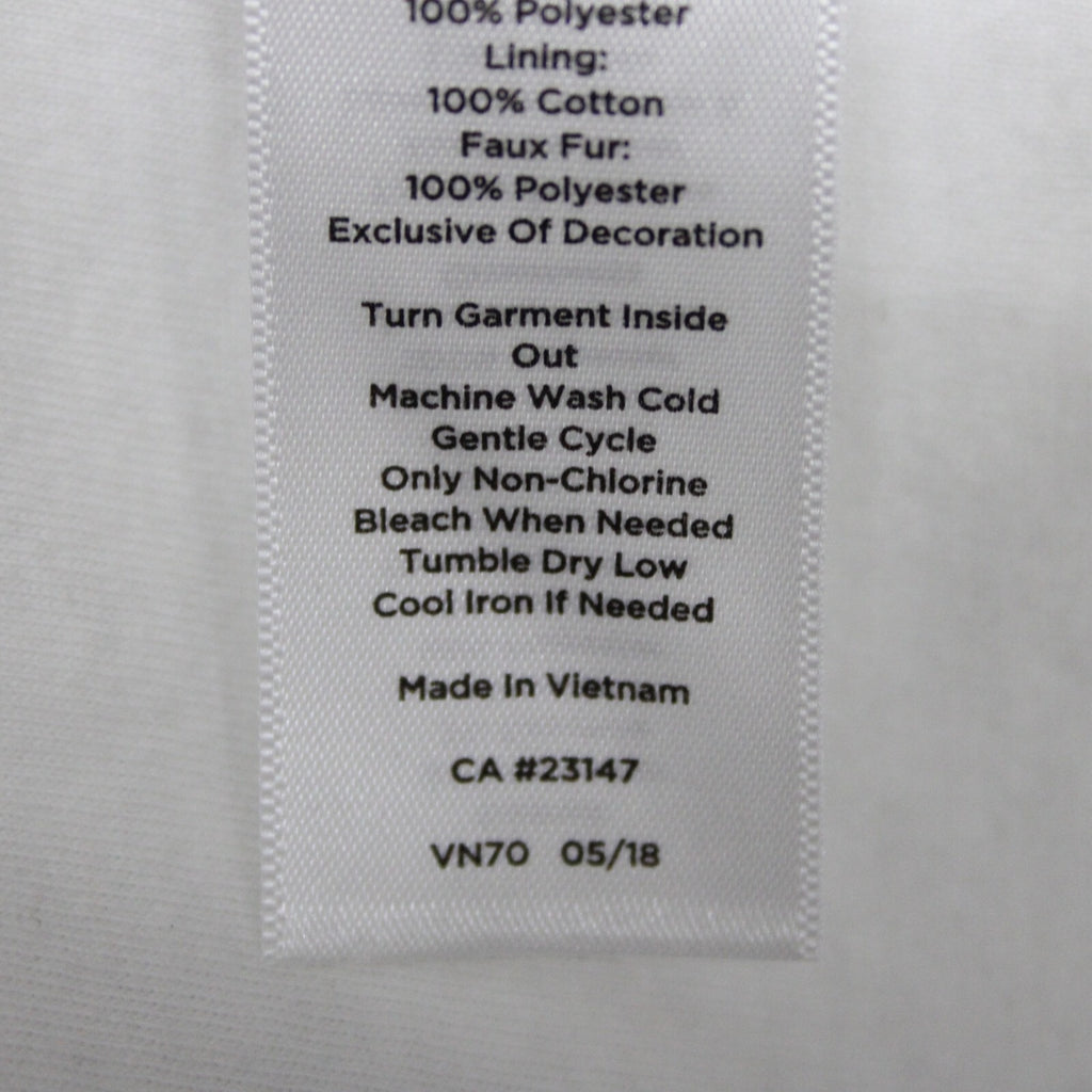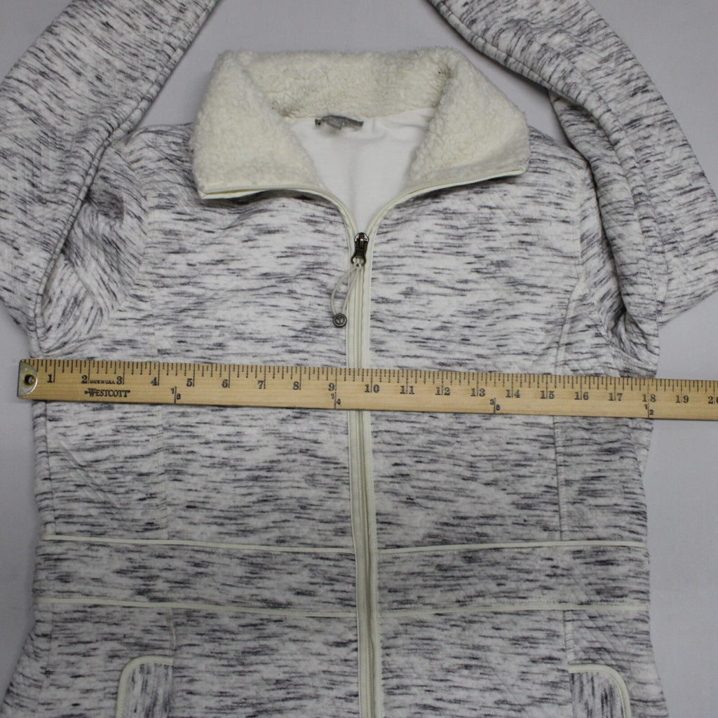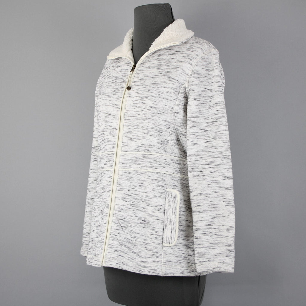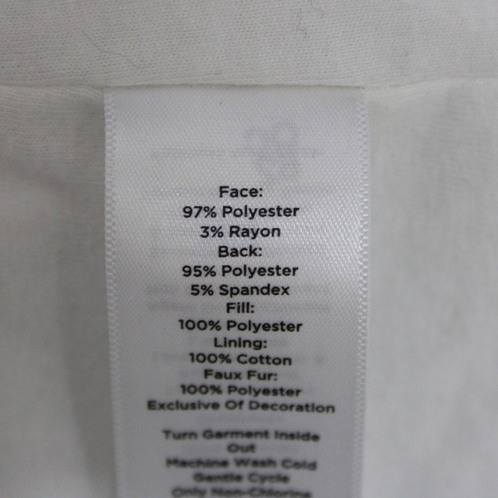 T By Talbots Sz SP White Gray Collared Pockets Zipper Faux Fur Poly Jacket