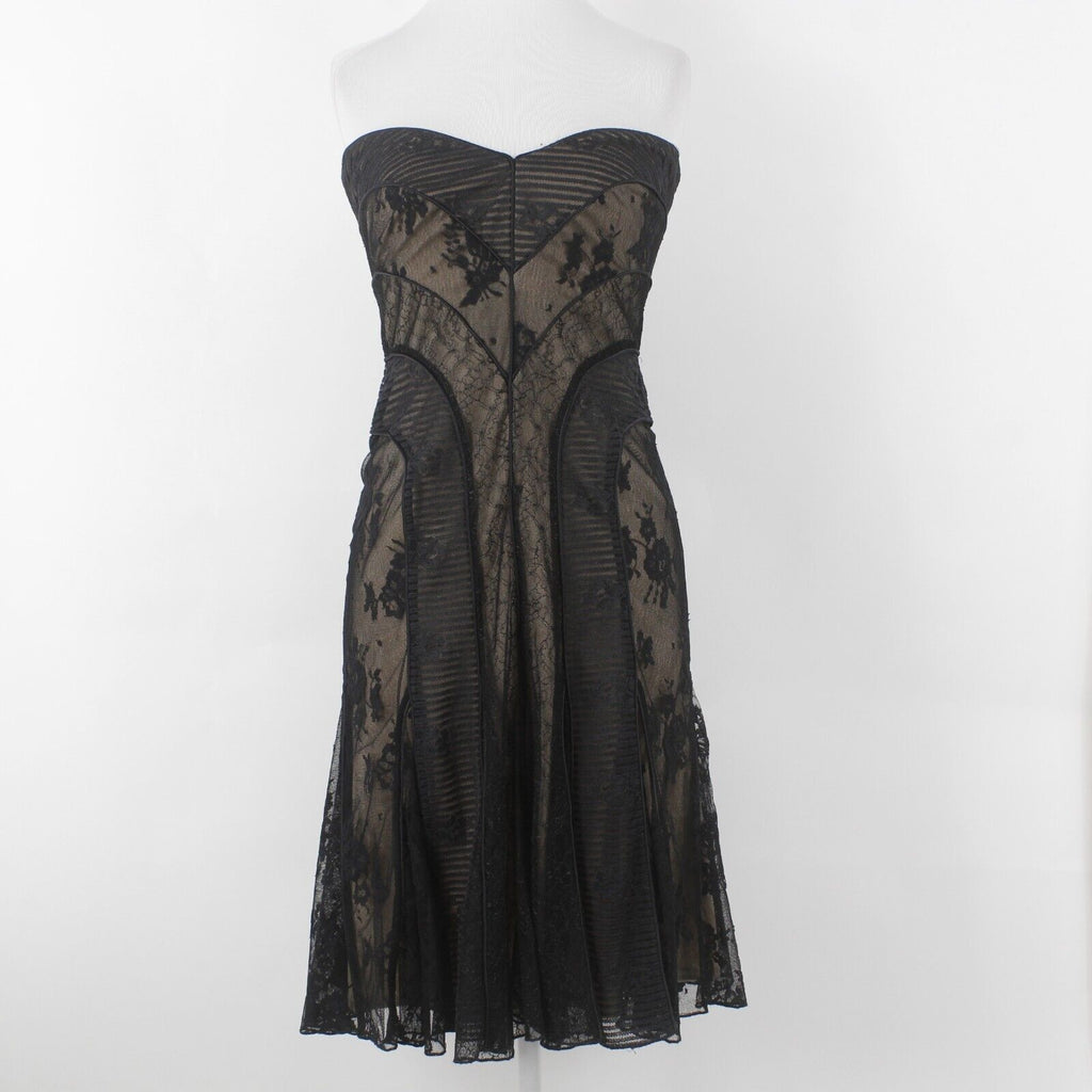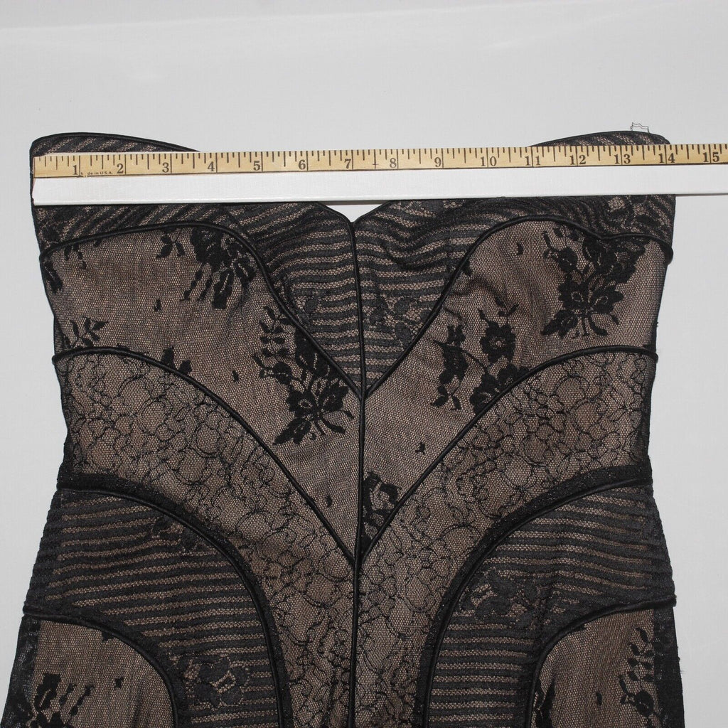 Tadashi NEW $390 Sz 2 Black Laceover Nude Lined Strapless Nylon Blend Dress