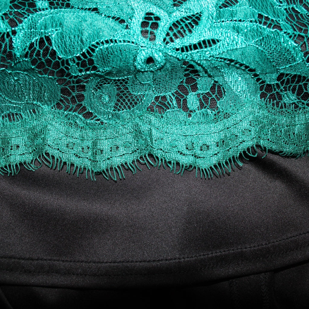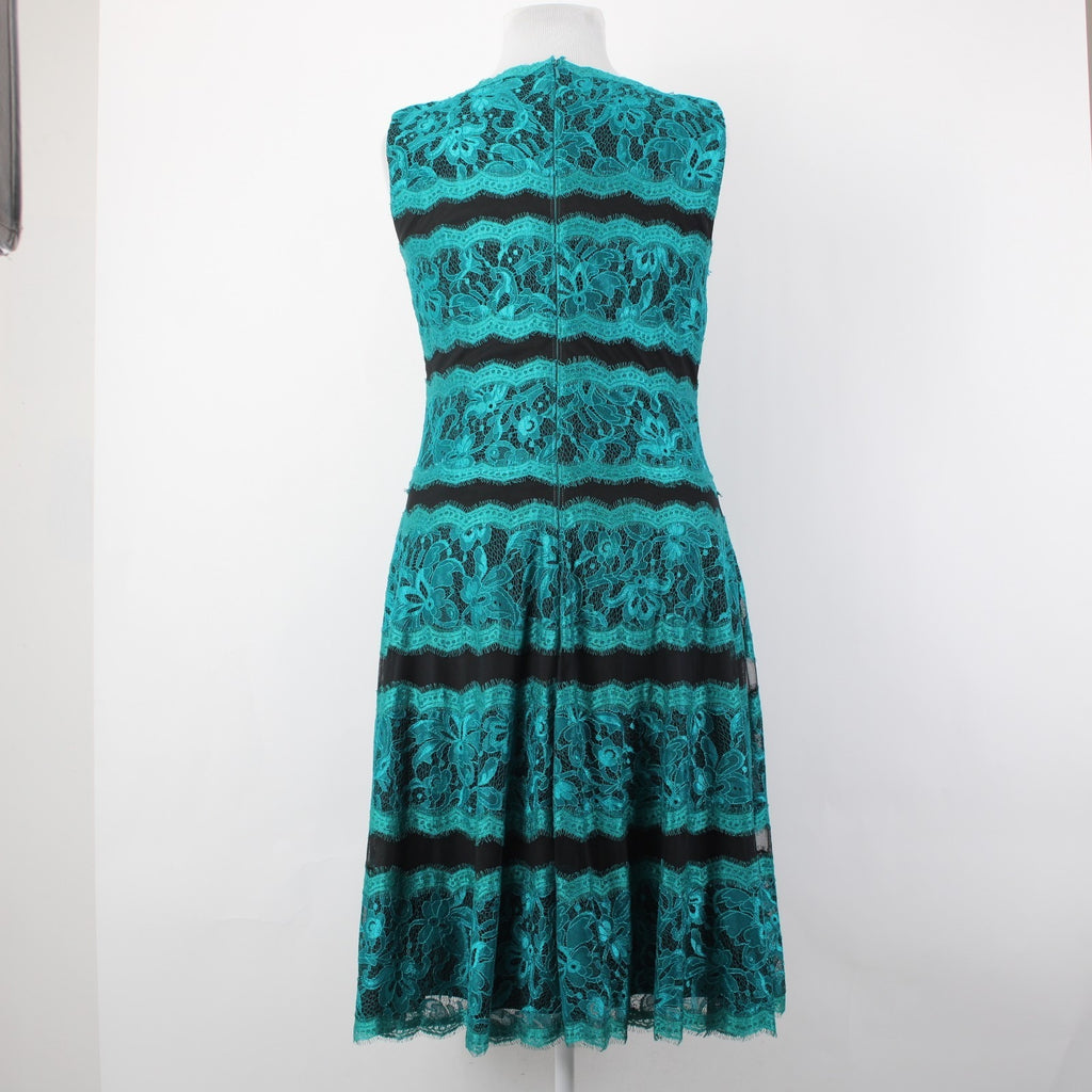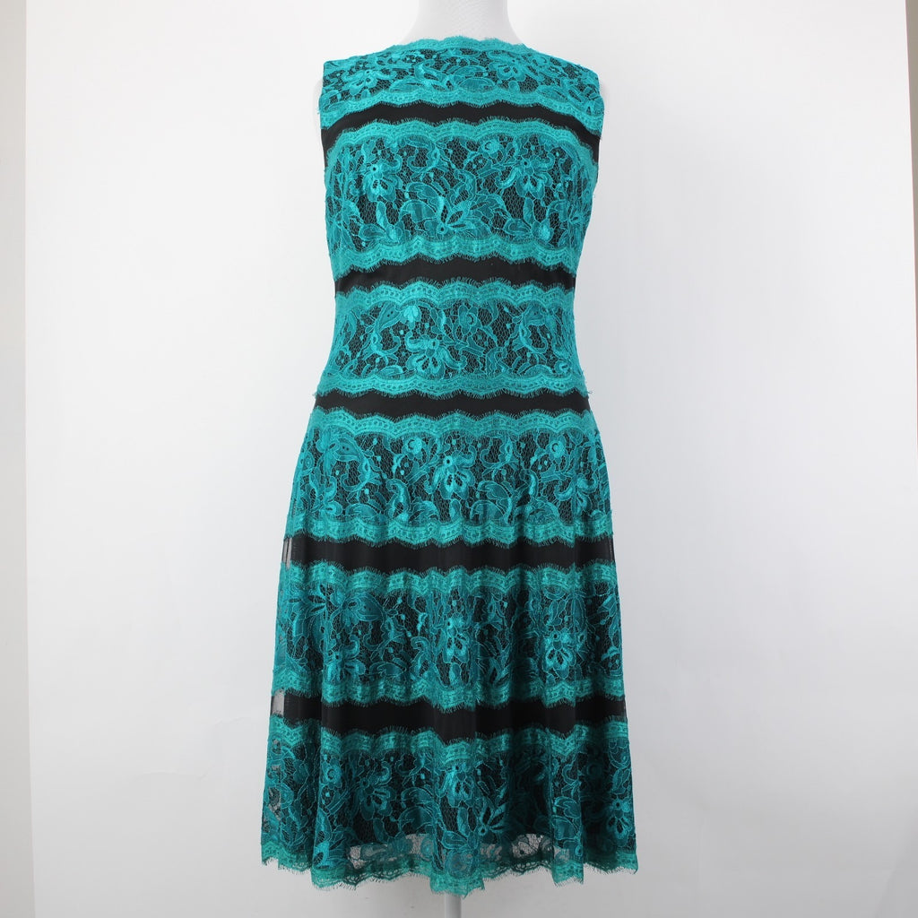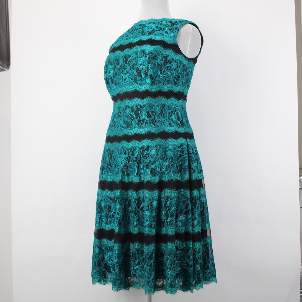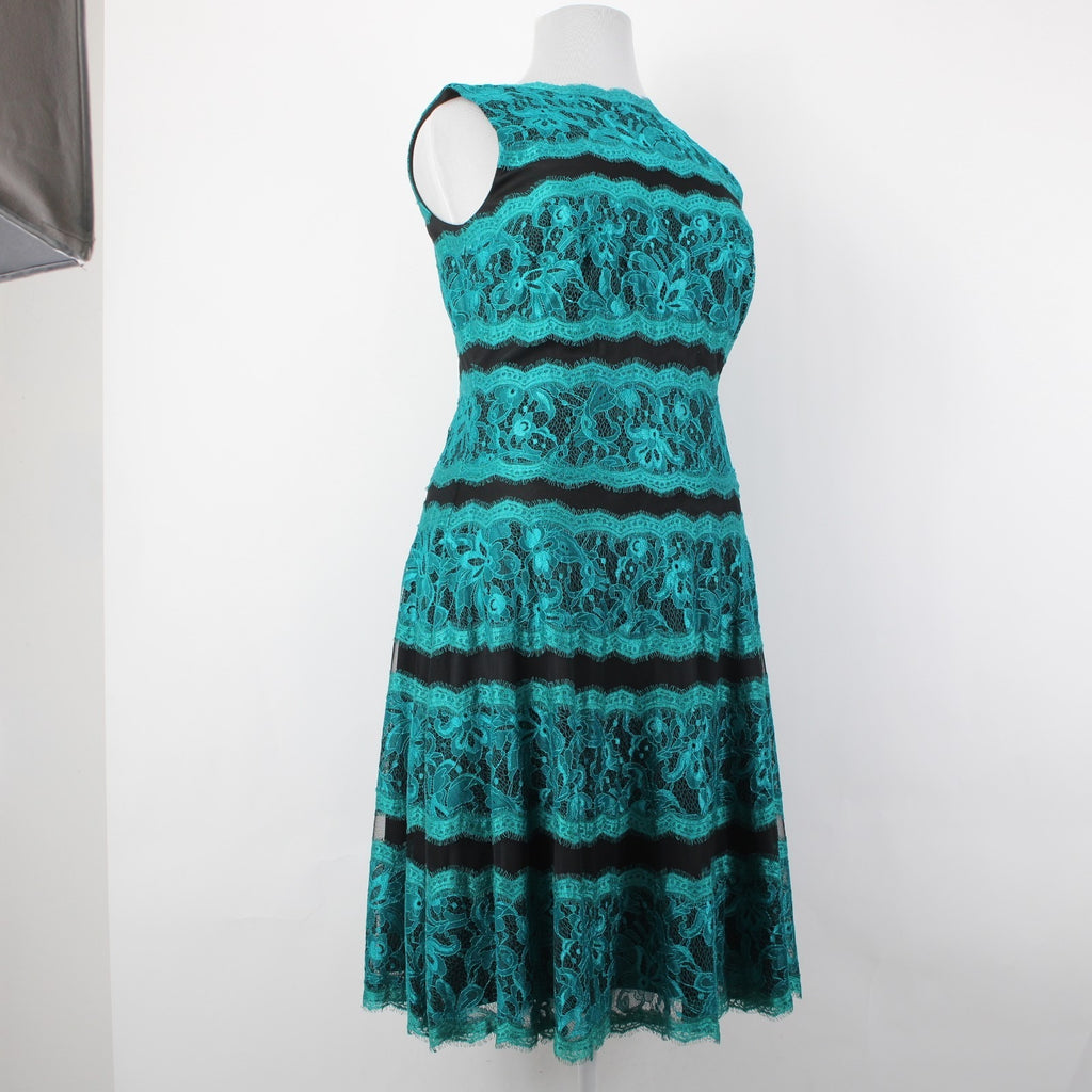 Tadashi Shoji Dress Sz 16 Aqua Blue Black Lace Fit Flare 100% Nylon Poly Dress