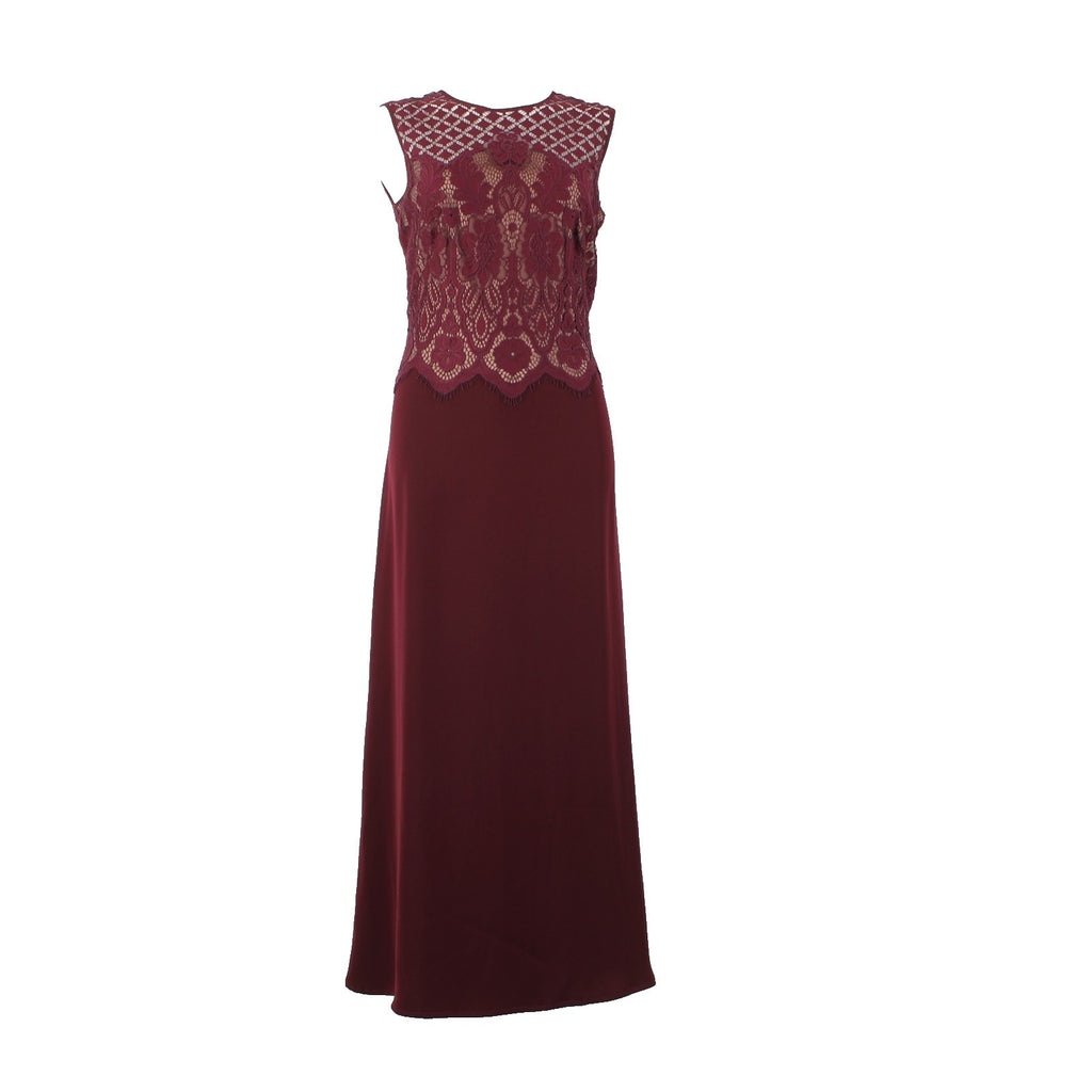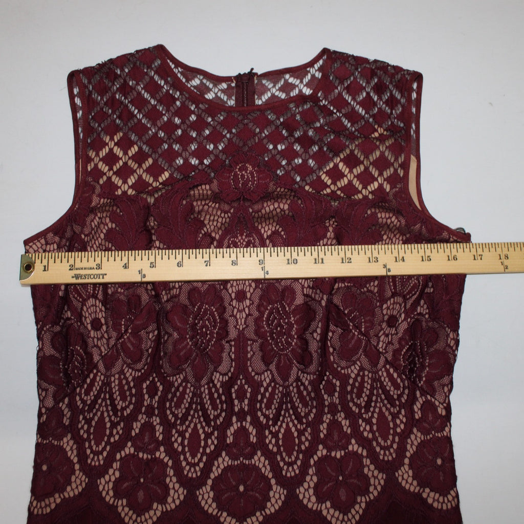 Tadashi Shoji Dress Sz 8 Burgundy Red Tan Lined Embroidered Nylon Cotton Dress
