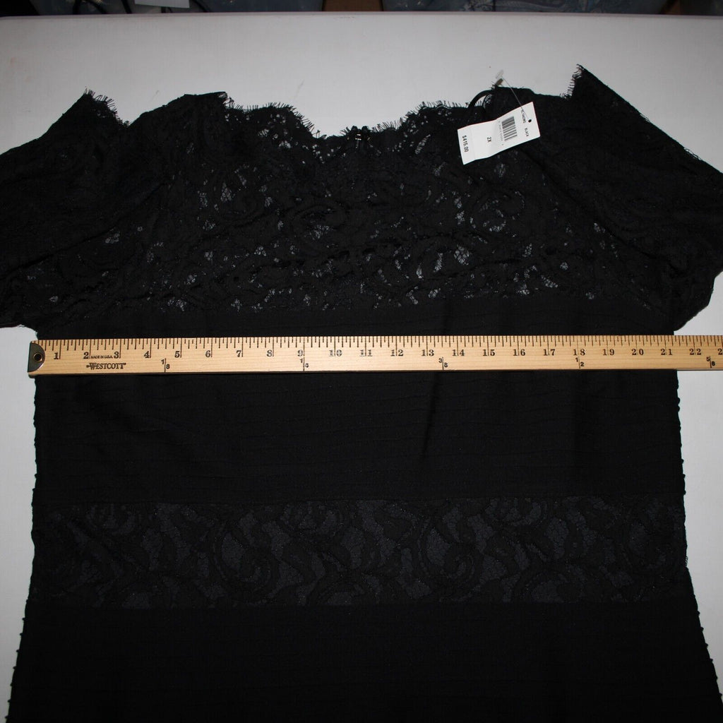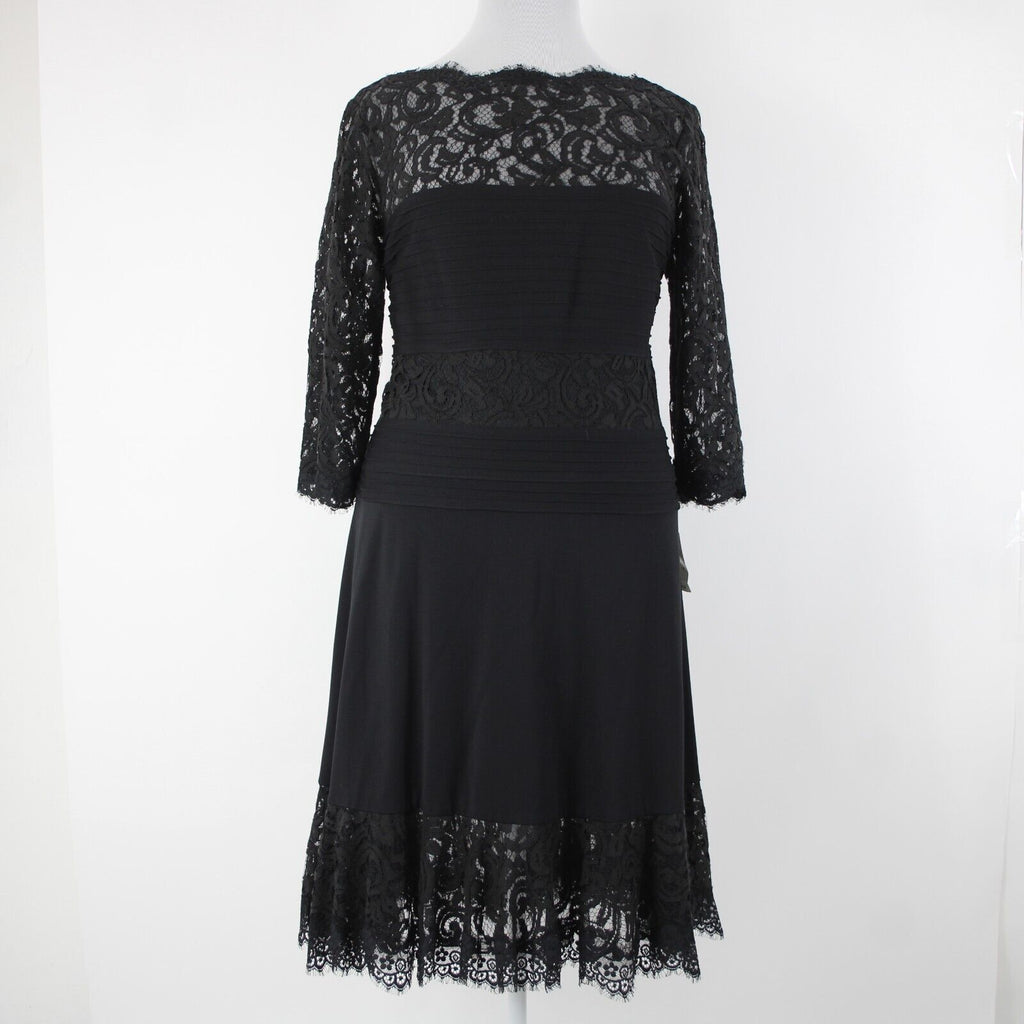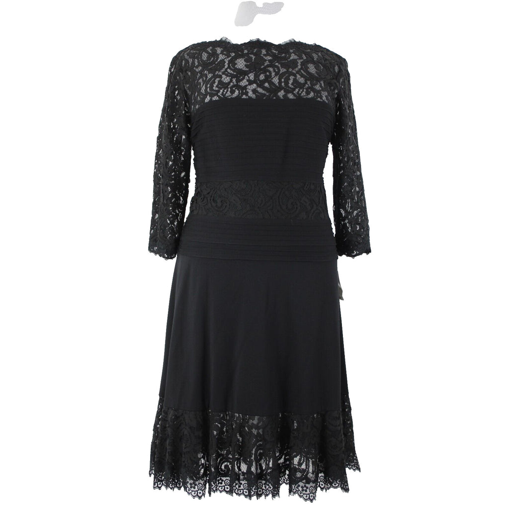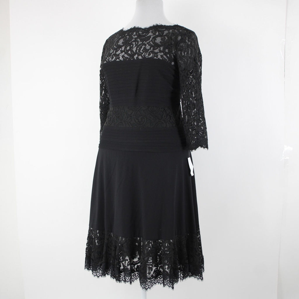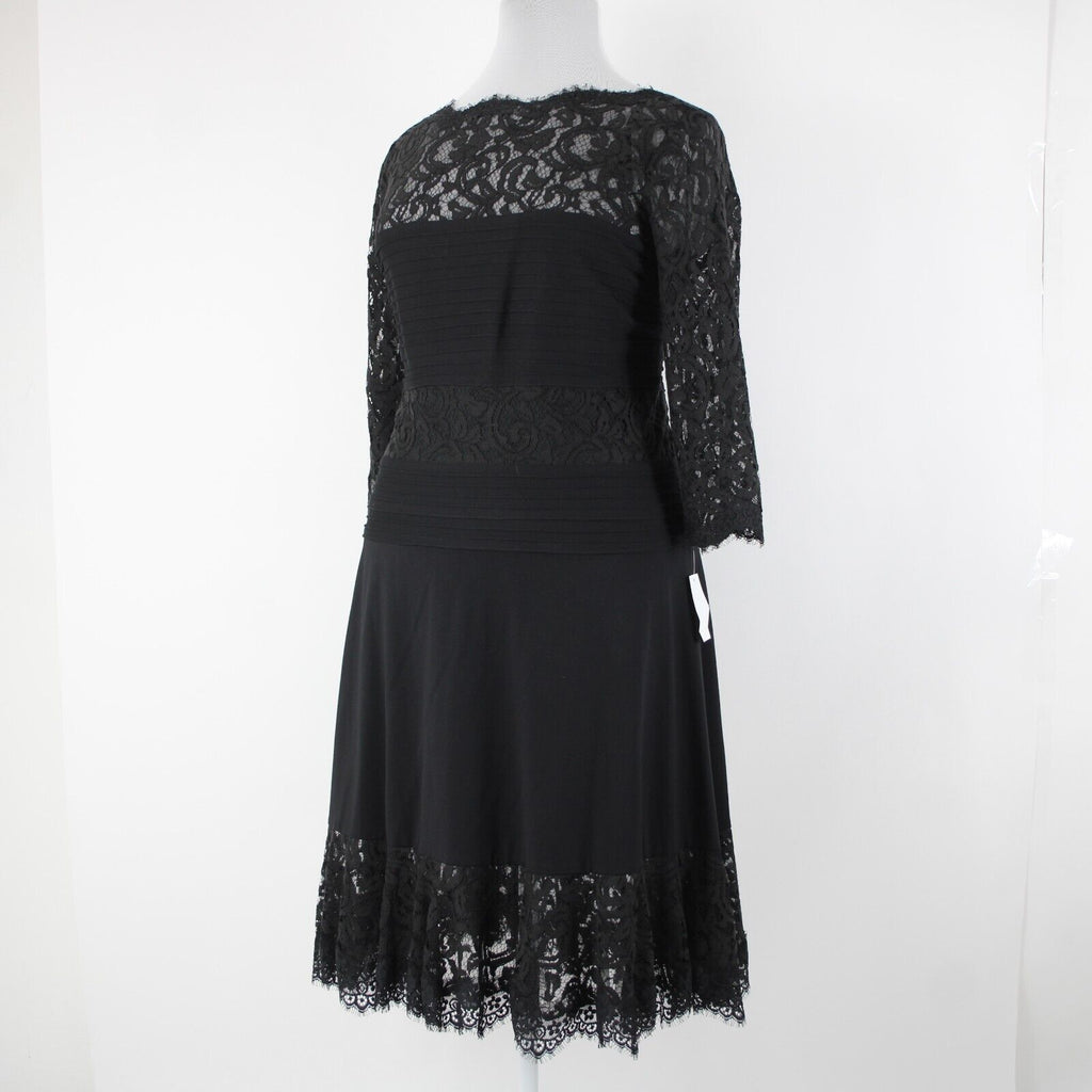 Tadashi Shoji NEW $415 Sz 2X Black Lace Lined Mid Sleeve Rayon Nylon Dress