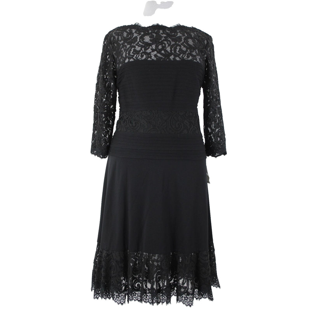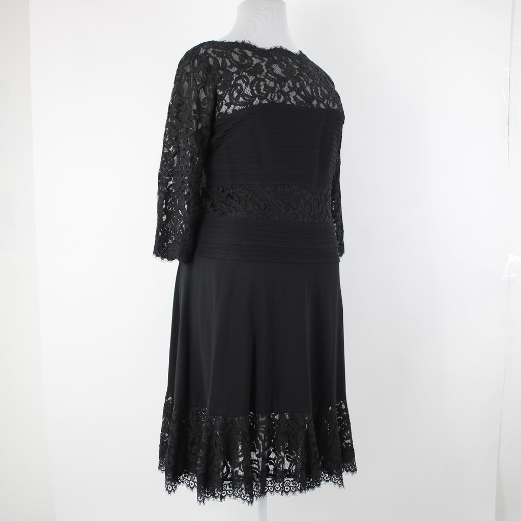Tadashi Shoji Sz 2X Black Lace Lined Mid Sleeve Rayon Nylon Dress