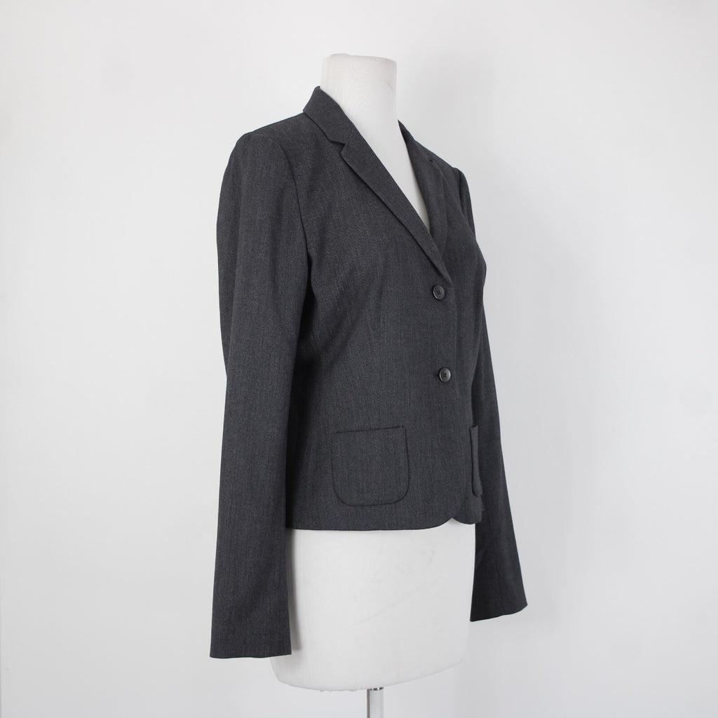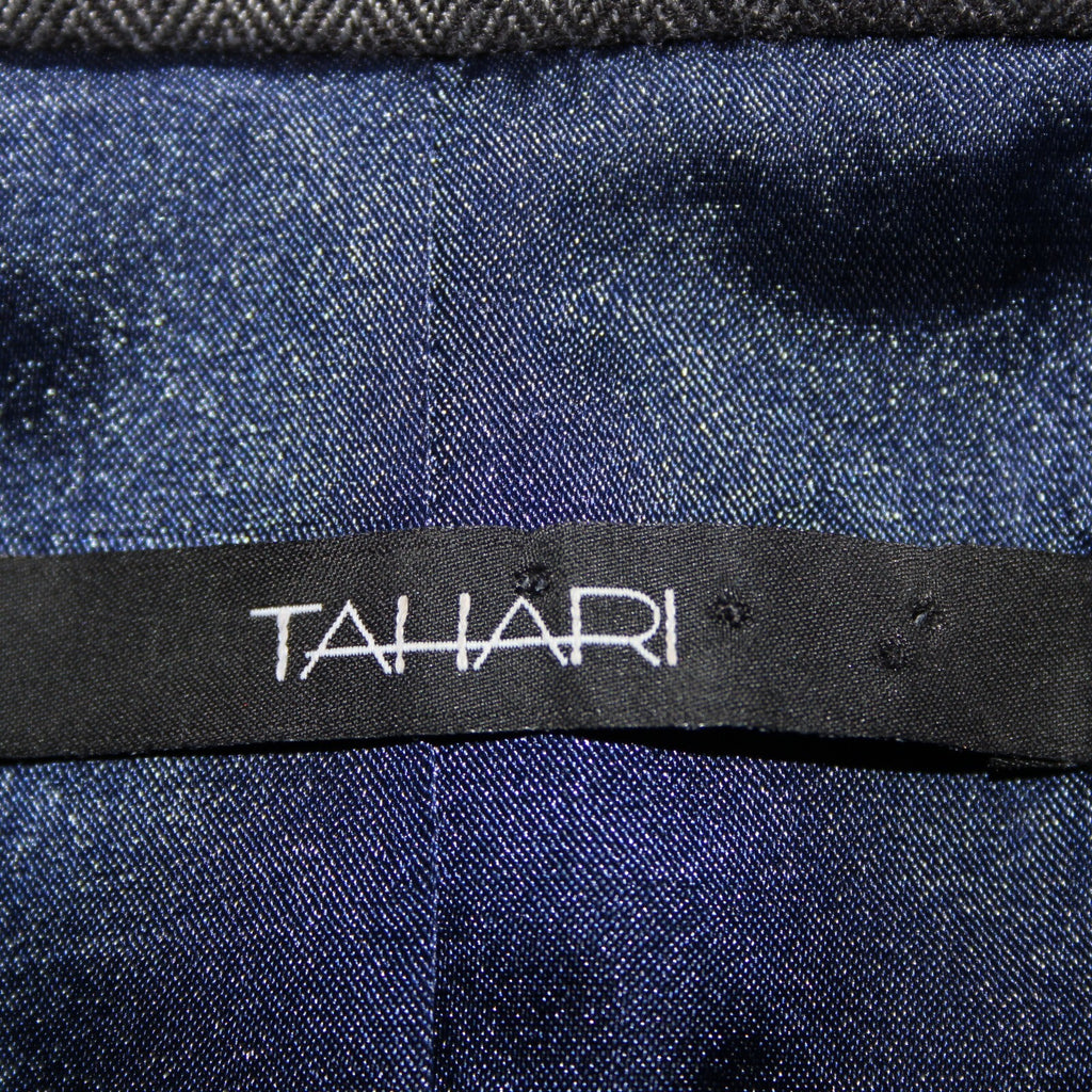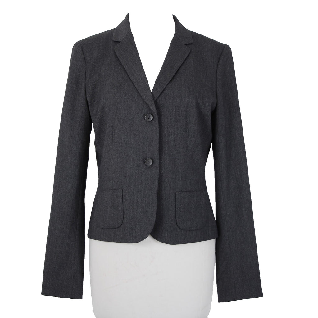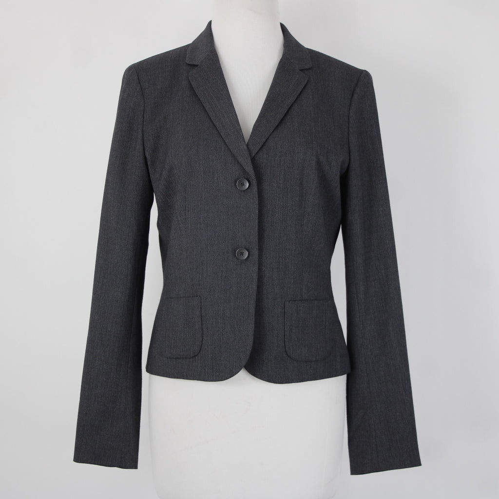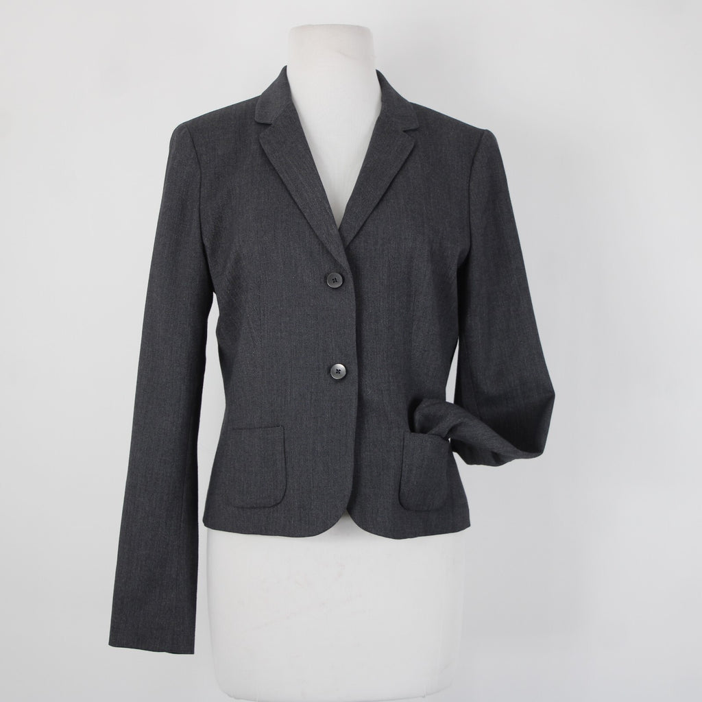 Tahari Sz 8 Gray Fine Herringbone Patch Pockets Polyester Lined Blazer Jacket